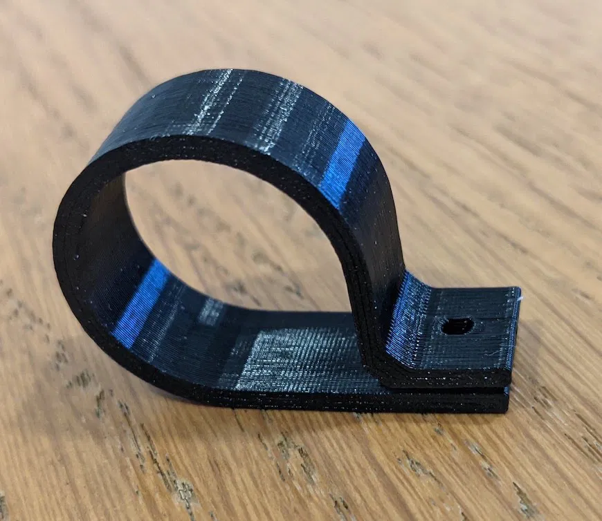 Kẹp vòng đơn giản này dùng cho ống nhựa PVC 20mm. In nằm nghiêng với 100% độ đặc để có độ cứng tốt nhất. Thời gian in mỗi kẹp khoảng 18 phút.