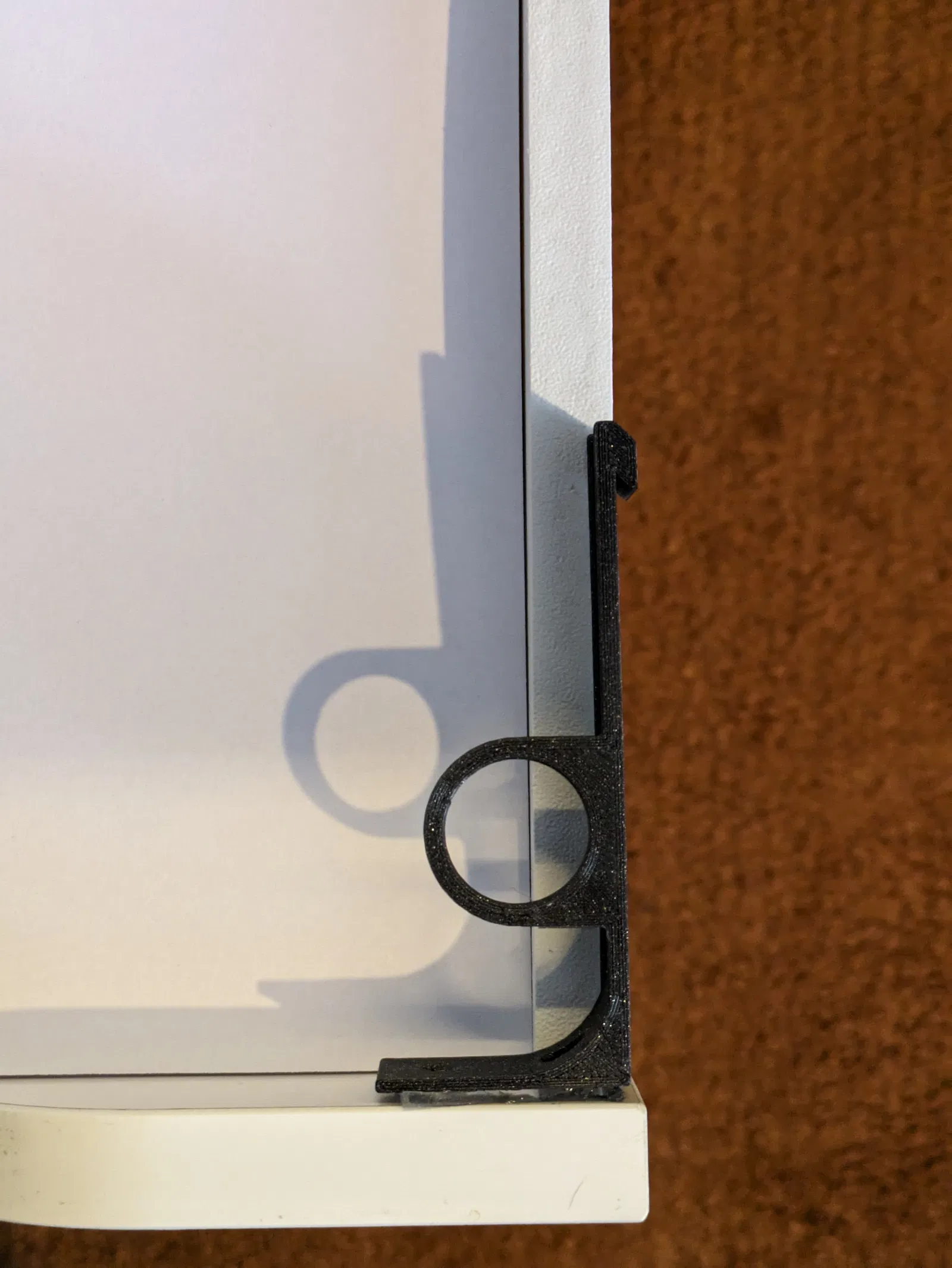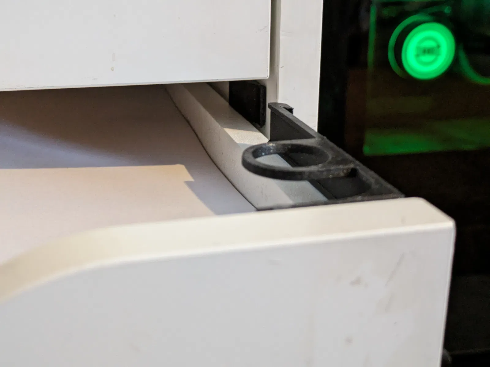 Cái rãnh nhỏ ở phần chốt á giúp mình canh nó ngay mặt trước hộc tủ, nhưng nếu mấy bạn dùng băng keo dày để dán thay vì vít á, thì cứ đặt cái đó phẳng trên máy in rồi cắt bỏ cái rãnh đi để in cho nó dễ và đẹp hơn.