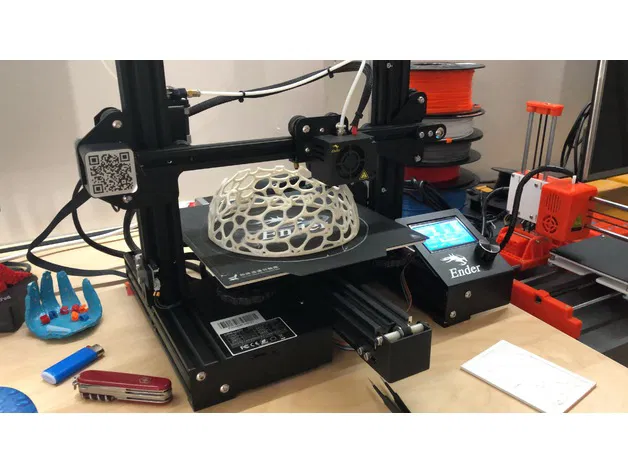 Đây là mẫu hình bán cầu. Tôi đã làm việc với các phân đoạn và sau khi áp dụng một số bộ sửa đổi cho mô hình. Cuối cùng, tôi đã chuyển nó thành dạng wireframe và sau đó tạo độ dày cho các bức tường. Mục tiêu của tôi là in ở kích thước tối đa mà máy in cho phép, nhưng vì không có nhiều kiên nhẫn hoặc thời gian nên tôi đã quyết định in nó với đường kính 20 cm để thử nghiệm mô hình này mà không cần hỗ trợ ở chất lượng tiêu chuẩn. Mô hình này là một phần của thương hiệu MO-design.studio của tôi, nơi cung cấp các tệp STL theo dạng đăng ký.