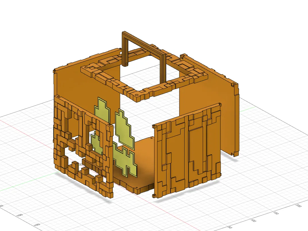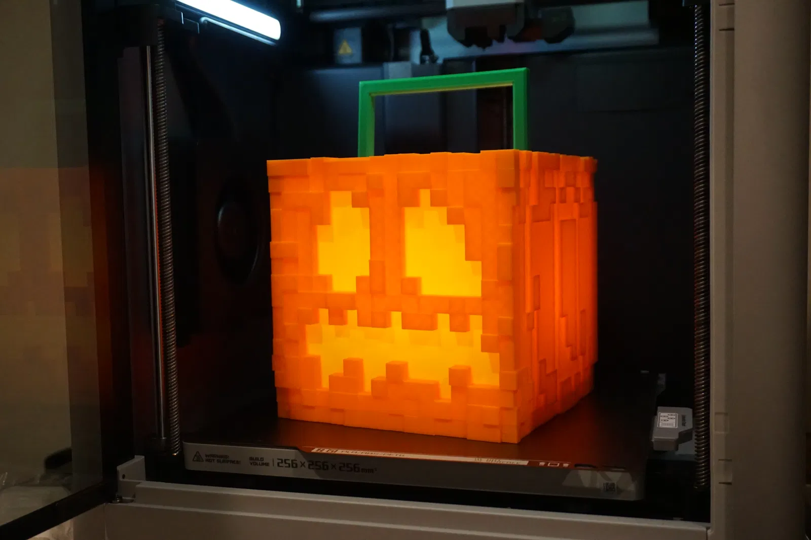Giỏ kẹo Halloween Minecraft, có thể biến thành đèn bí ngô bằng cách dùng nắp tùy chọn. Cần ốc M3, cờ lê, keo và đèn pin. Lưu ý chỉ dùng đèn pin, không dùng lửa trần. Hỗ trợ in đa màu và file Bambu Studio.