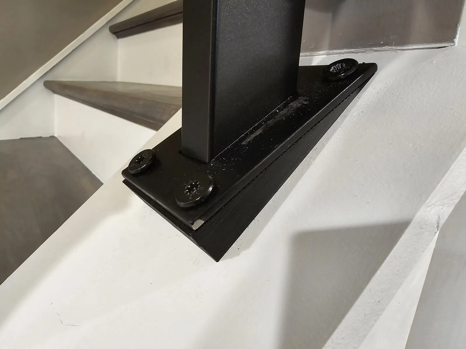Miếng đệm này cho phép trụ cầu thang Muzata PR11 lắp được trên các bậc thang có góc nghiêng lớn hơn 30 độ. Kích thước miếng đệm là độ hở ở điểm xa nhất của nêm. Lắp nêm dưới chân trụ PR11 và nên dùng 100% infill.