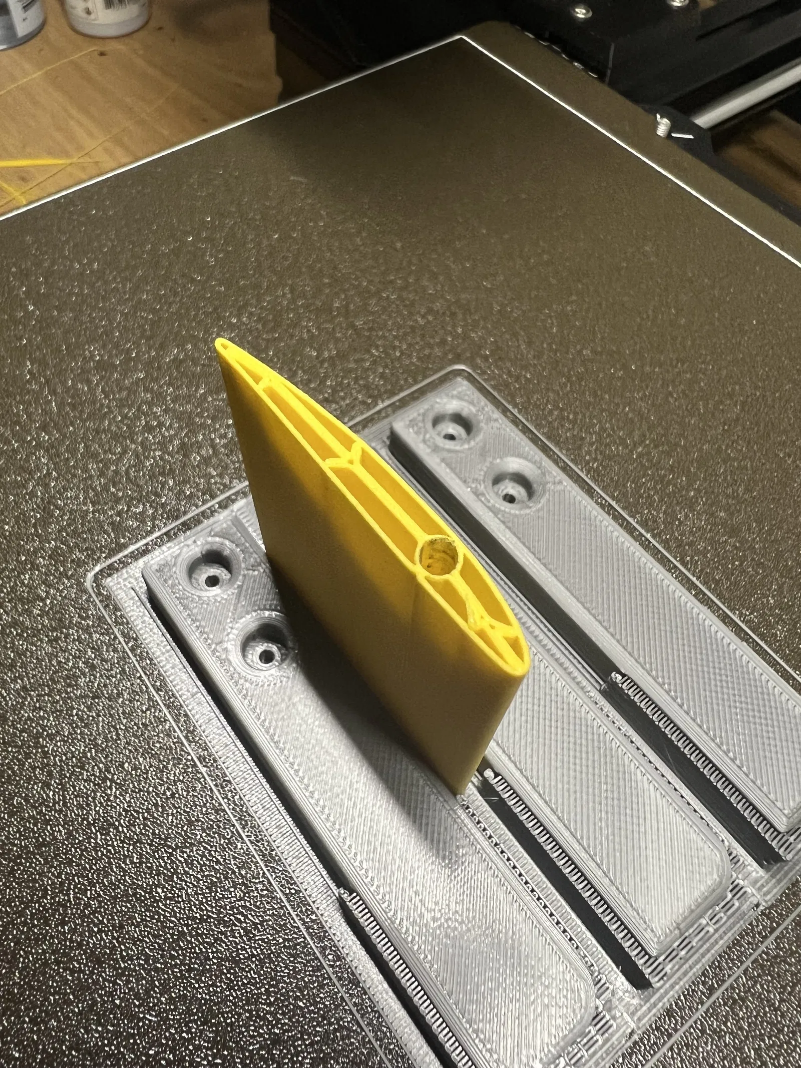 Tôi đã thử in cánh quạt thành 2 phần nhưng tôi thấy chúng bắt đầu rung như con lắc dẫn đến các lỗi lớp. Chia chúng thành 3 phần đã giải quyết được vấn đề. Tôi đang cung cấp các tệp cho cánh quạt theo 3, 2 và 1 phần để bạn có thể thử nghiệm trên máy in của riêng mình nếu muốn.