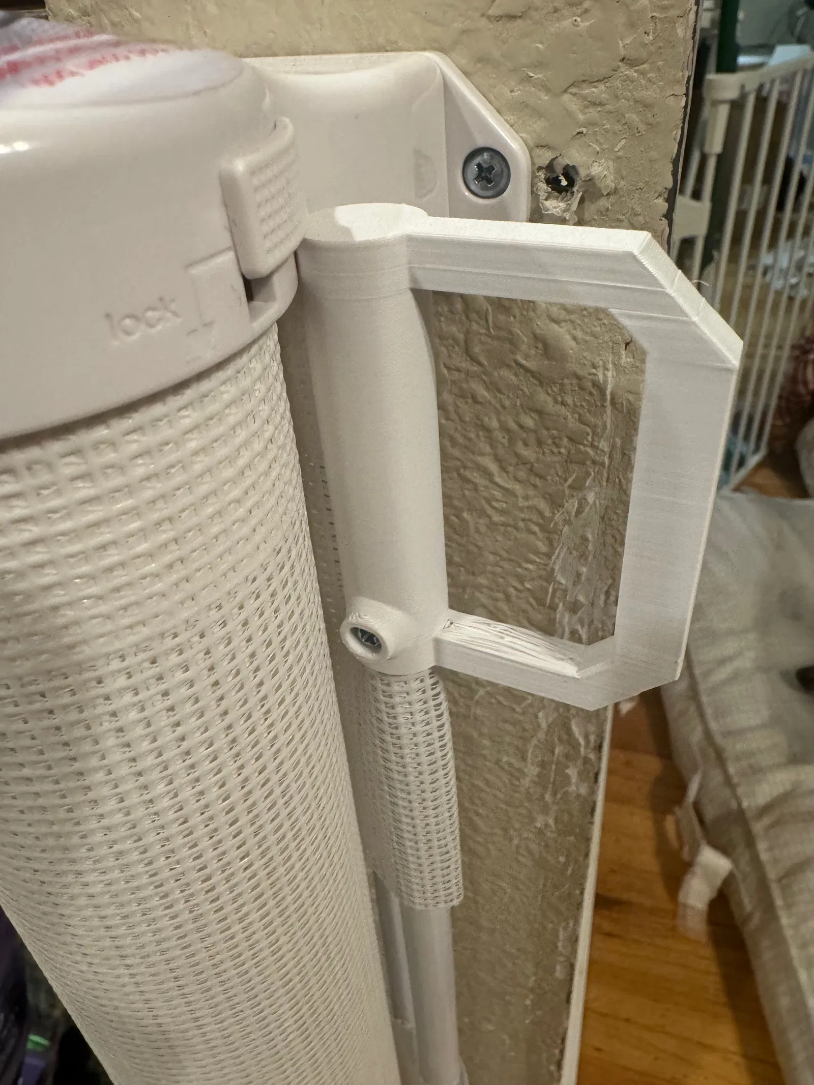 Do em bị vấp té rồi đập vô cái cổng an toàn Kiskiz retractable baby gate (mẫu này nè, cụ thể là nó) nên cái tay nắm phía trên bị gãy. Công ty có bán bộ phận thay thế trên Amazon nhưng mà mắc công trả 13 đô cho mấy cục nhựa ép phun, em có cái máy in 3D xịn 1000 đô sao không xài! Mà lỡ lần sau có gãy nữa thì có sẵn cái để thay liền.