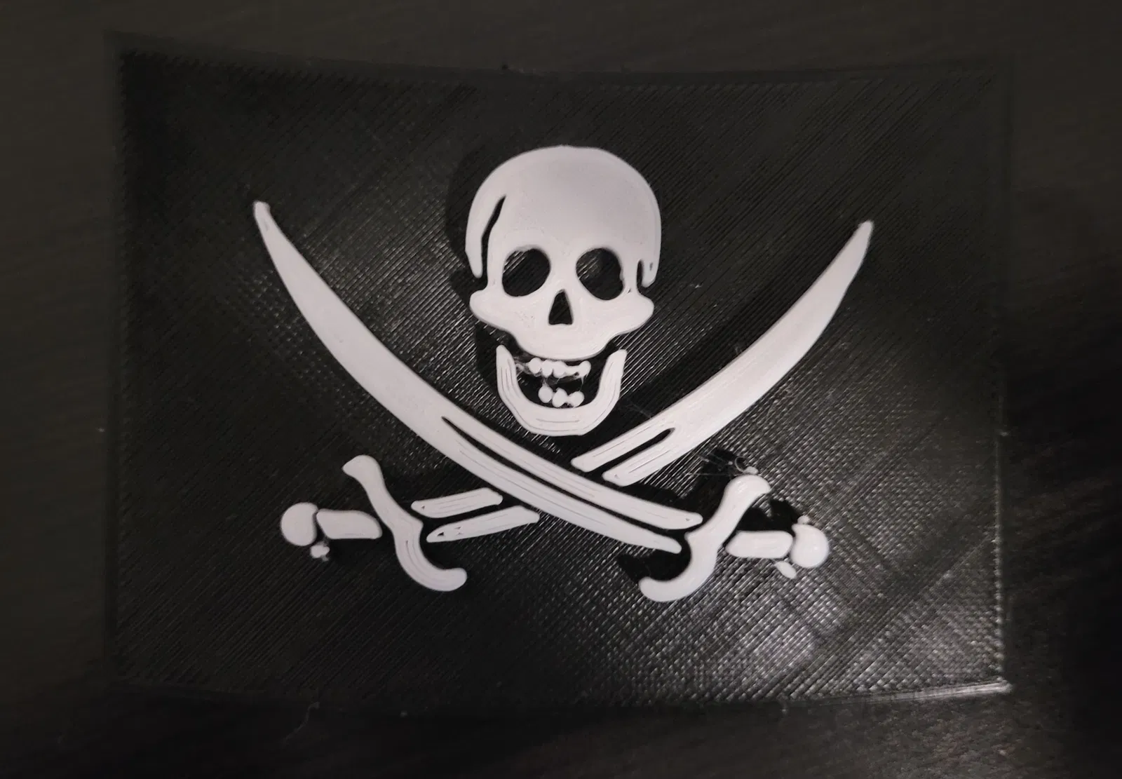 Mô hình cờ Jolly Roger trên con tàu Black Pearl huyền thoại từ loạt phim Cướp biển vùng Caribbean. Một vật phẩm không thể thiếu cho fan của hải tặc và biểu tượng đầu lâu xương chéo.