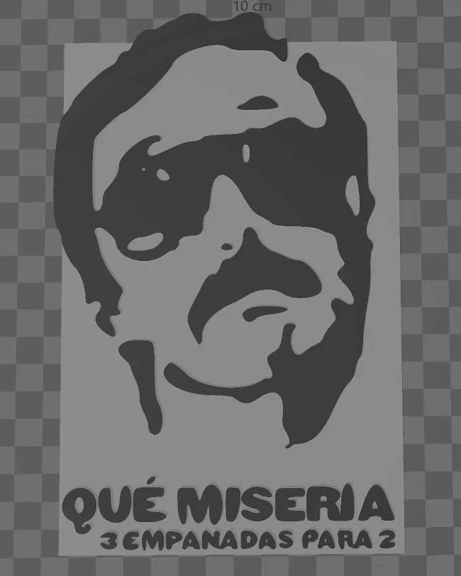 Mô hình chân dung Luis Brandoni trong phim "Esperando la Carroza" để in 2 màu. Kích thước 20cm dài x 13cm rộng x 2mm dày. Dùng độ cao lớp 0.2 và 2 đường viền để giữ chi tiết, bật làm mịn để hoàn thiện tốt hơn.