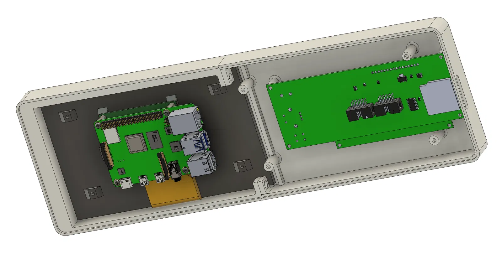 Cái này tui thiết kế cho cái lồng của máy Prusa mk3s+, để nó vừa với màn hình LCD của máy in, cũng như màn hình cảm ứng 7" chính hãng của Raspberry Pi, và một chiếc Raspberry Pi 4 gắn phía sau nó.