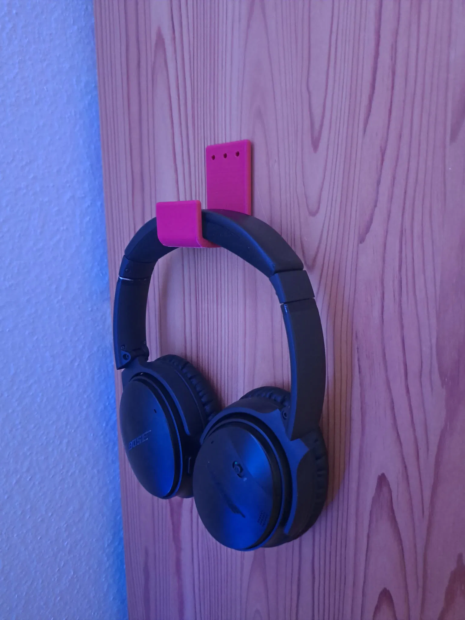 Giá treo tai nghe này có thể gắn lên tường hoặc các bề mặt tương tự. Được in với chiều cao lớp 0,2mm, có 3 lỗ (3mm) để đóng đinh hoặc bắt vít, hoặc bạn có thể dùng băng dính hai mặt loại mạnh để treo. Một giải pháp tiện lợi để giữ tai nghe của bạn gọn gàng.