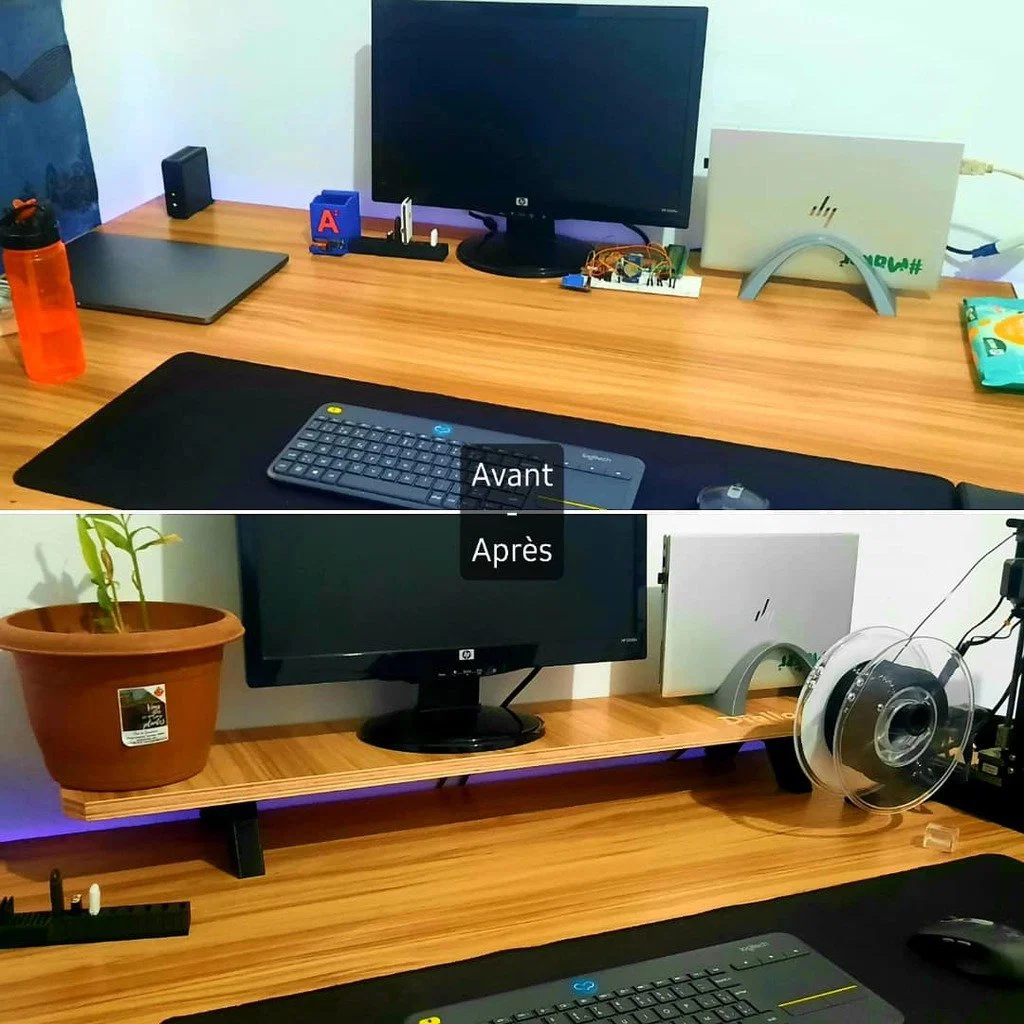Dự án chân đế màn hình nhỏ, được thiết kế với máy phay Cnc để cắt gỗ và 2 chân in 3D. Bạn nhận được file STL "pied" và 2 file Gcode cho Ender 3 và Prusa MK3S. Cần 6 vít gỗ 4x25mm.