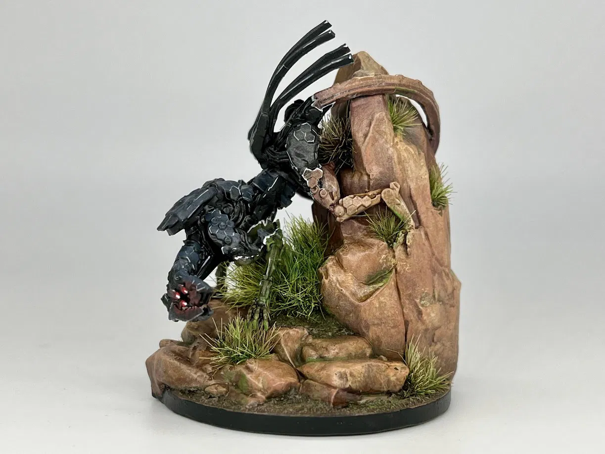 Mày chưa kịp thấy nó thì đã quá trễ rồi, nhưng đây là một con Stalker nữa đang rón rén bò ra từ Horizon. Con máy này có tỉ lệ với board game chính thức của Horizon Zero Dawn và đứng trên một đế 50mm được điêu khắc. Nó được thiết kế để in nguyên khối cùng với đế. Tao đã in với đế gắn liền với build plate và một vài cái support bên trong chắc chắn cho con stalker phía trên tảng đá. Toàn bộ công trạng về thiết kế nhân vật thuộc về Guerrilla Games.