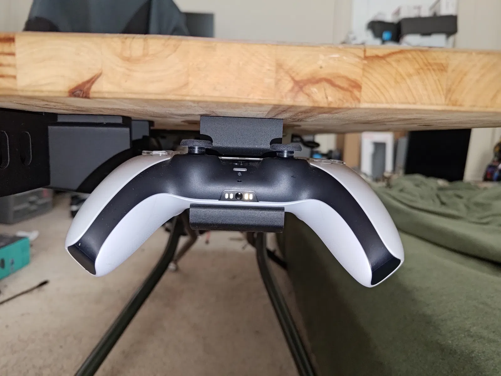 Đây là một giải pháp thay thế cho kiểu kệ treo tay cầm PS5 truyền thống, giúp bạn giữ tay cầm gọn gàng ngay bên dưới gầm bàn, tiết kiệm không gian và dễ dàng lấy sử dụng.