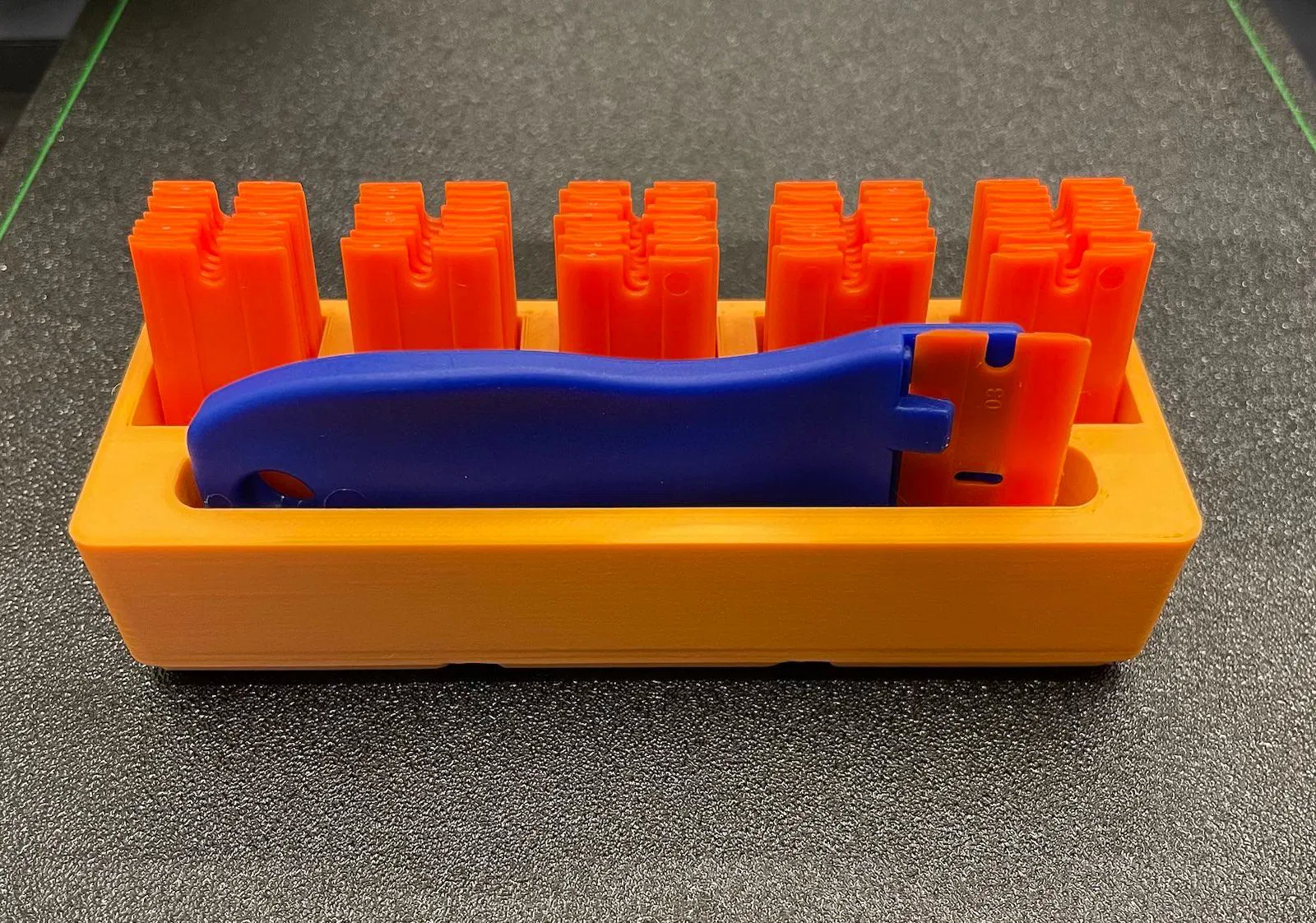 Hộp đựng Gridfinity 1x3 chắc chắn cho các loại dao cạo có lưỡi Nylon. Không cần nam châm, không có gờ. Cao khoảng 5u. Thiết kế lại đường viền để hạn chế va chạm vào lưỡi dao.