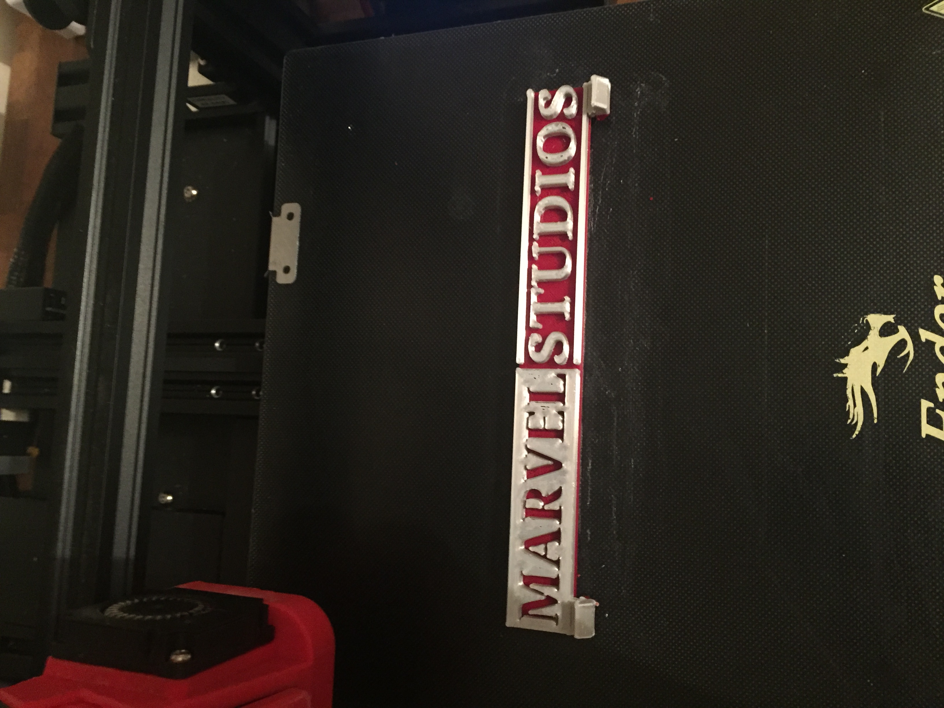Biển hiệu Marvel đơn giản có thể gắn vừa trên khung Ender 3 hoặc các khung khác tùy ý bạn. Không cần supports. Thay đổi màu sắc ở layer 23 nếu giữ nguyên kích thước.