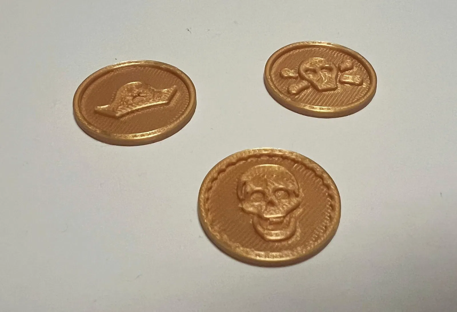 Bộ sưu tập tiền xu cướp biển, thích hợp cho trẻ em, trò chơi, hoặc để trang trí. Mỗi đồng xu có đường kính 26mm, dày 2mm. Nên in với độ phân giải 0.16mm để có kết quả tốt nhất.