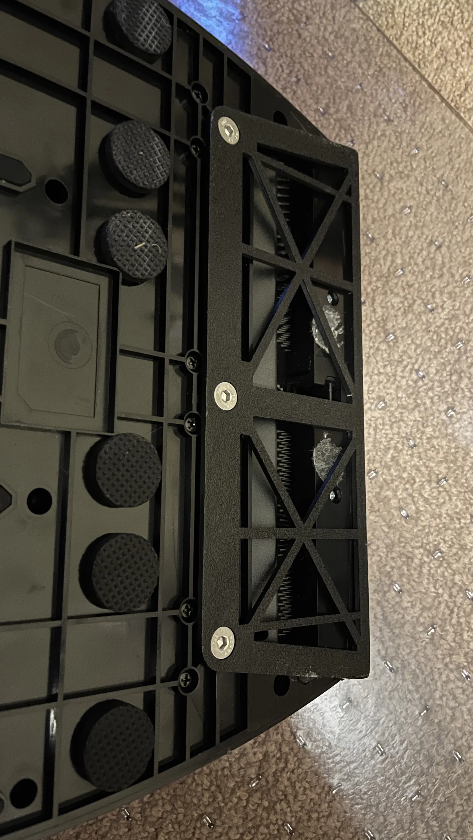 Làm cho mặt sau của bàn đạp đua Logitech g920 phẳng lại, để nếu bạn đặt nó dựa vào một bề mặt phẳng thì nó sẽ không bị xoay.