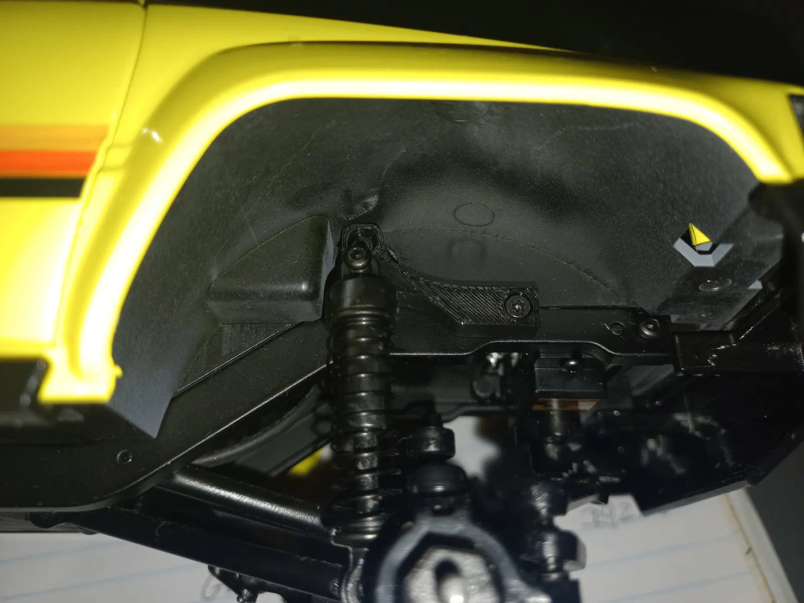 Tôi muốn trục sau có độ flex nhiều hơn và nghĩ ra loại shackle kiểu revolver. Nó cho độ flex nhiều hơn hẳn. Bạn sẽ cần 2 con vít m3x8 và đai ốc khóa. Đừng siết chặt hoàn toàn vì các bộ phận cần phải di chuyển.