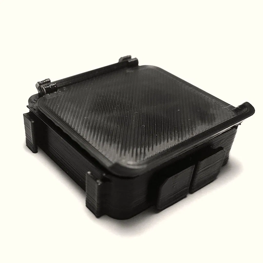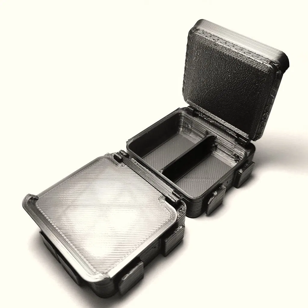 Đầu tiên, các phần chèn bản lề được gắn vào trục của nắp. Sau đó, tất cả được lắp ráp vào hộp. Phần chèn bản lề sau đó được cố định từ phía sau bằng một đoạn filament. Các phần chèn bản lề và bản lề chạy mượt mà hơn nhiều với một giọt dầu silicone.