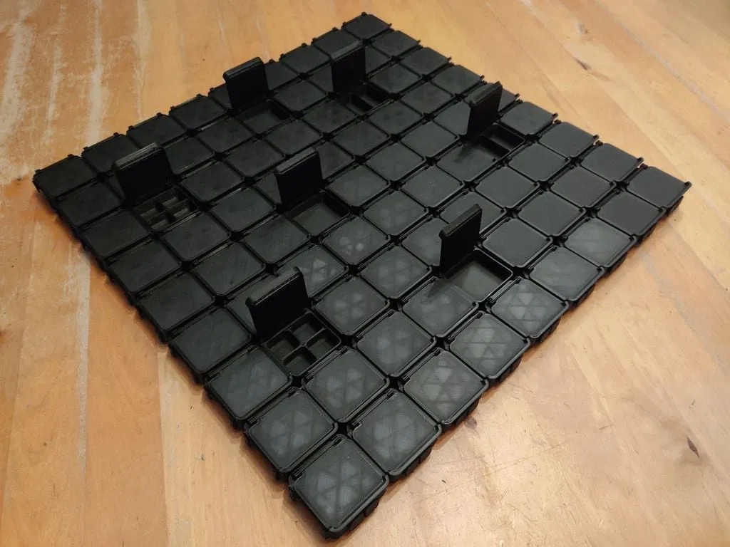 Nhiều hộp có thể được ghép lại với nhau để tạo thành một khay có kích thước bất kỳ. Điều quan trọng là các hộp mới chỉ có thể được lắp vào một góc trống nếu góc đó ở phía trên bên trái.