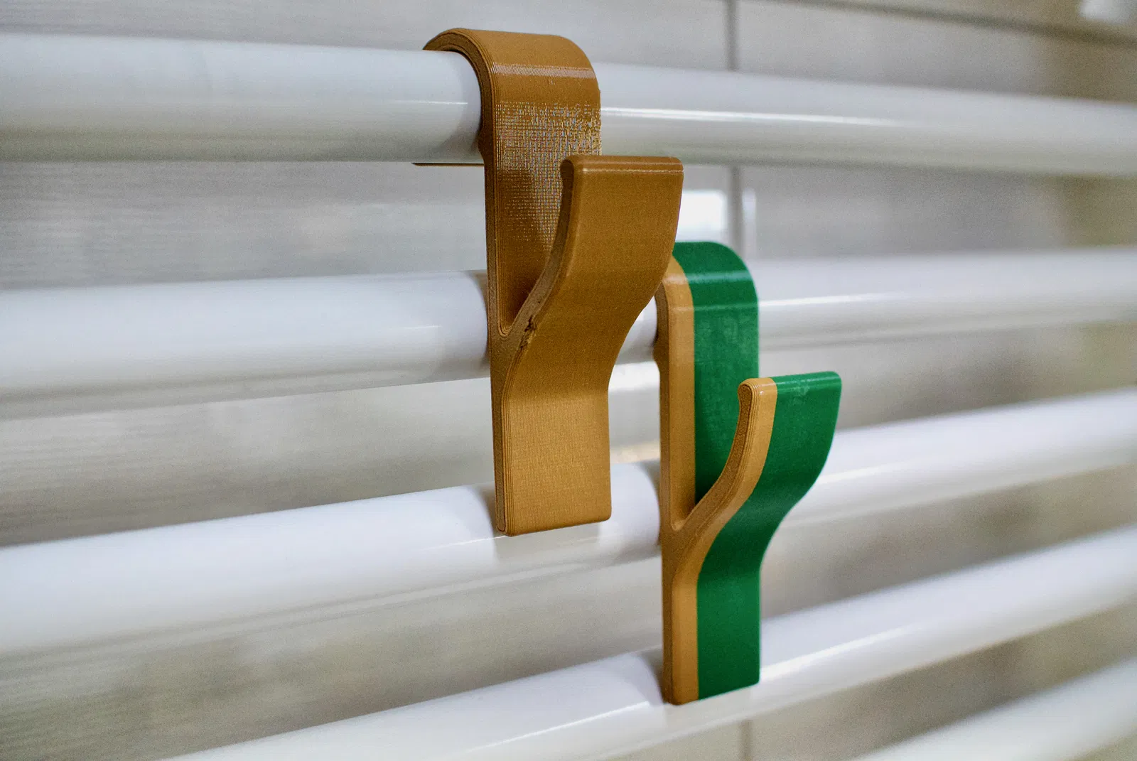 Móc treo khăn tắm phòng tắm, chuyên dụng cho loại ống sưởi ấm khăn khoảng 20 mm. Công dụng thì chắc là ai cũng biết rồi ha. Khác với mấy cái móc đi kèm theo máy sấy hay của IKEA, mấy cái móc này không bị rớt ra đâu, mà khăn tắm cũng bám tốt hơn nữa. Chất liệu PET-G, in không cần support, xài đầu phun 0.6 cũng được luôn, chiều cao lớp thì tùy ý nha.