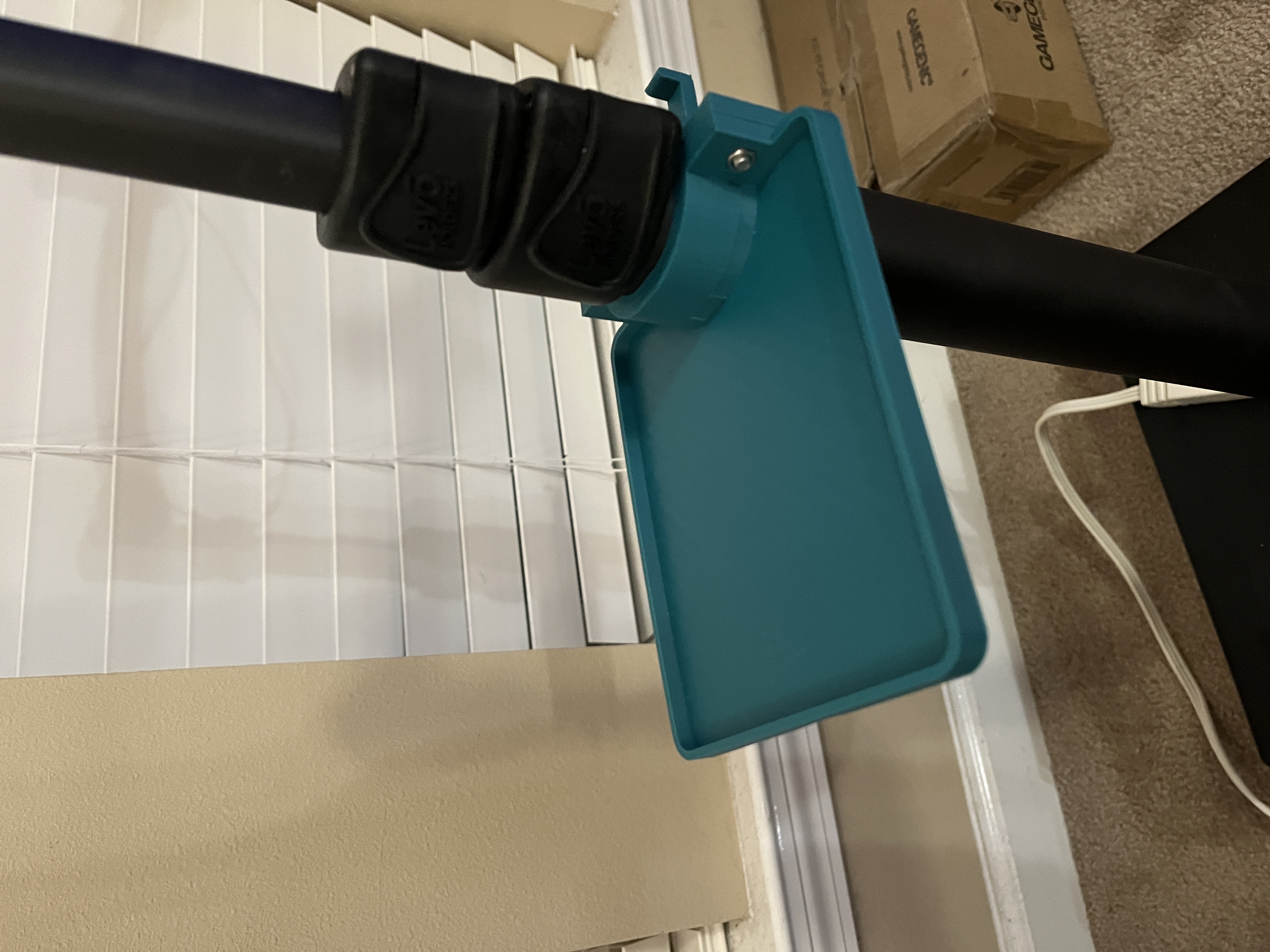 Cái kệ này kẹp vô ống chính của chân đế máy tính bảng Levo G2 Deluxe. Có loại vuông để đồ nhẹ như joycon, bút, kẹo, khăn giấy, và loại chữ nhật đựng tay cầm lớn hơn. Có thêm móc treo phía sau để treo dây cáp.