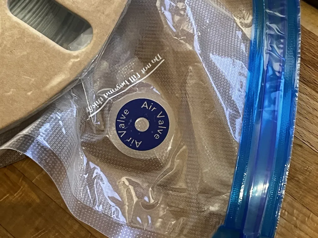 Cái adapter túi hút chân không đi kèm theo máy nó hổng có xài được cho mấy cái túi hút chân không đựng filament phổ biến. Mấy cái túi này cái van nó tới 30mm lận mà cái adapter đi kèm cho túi hút chân không thì cái lỗ nó chỉ có khoảng 25mm thôi.