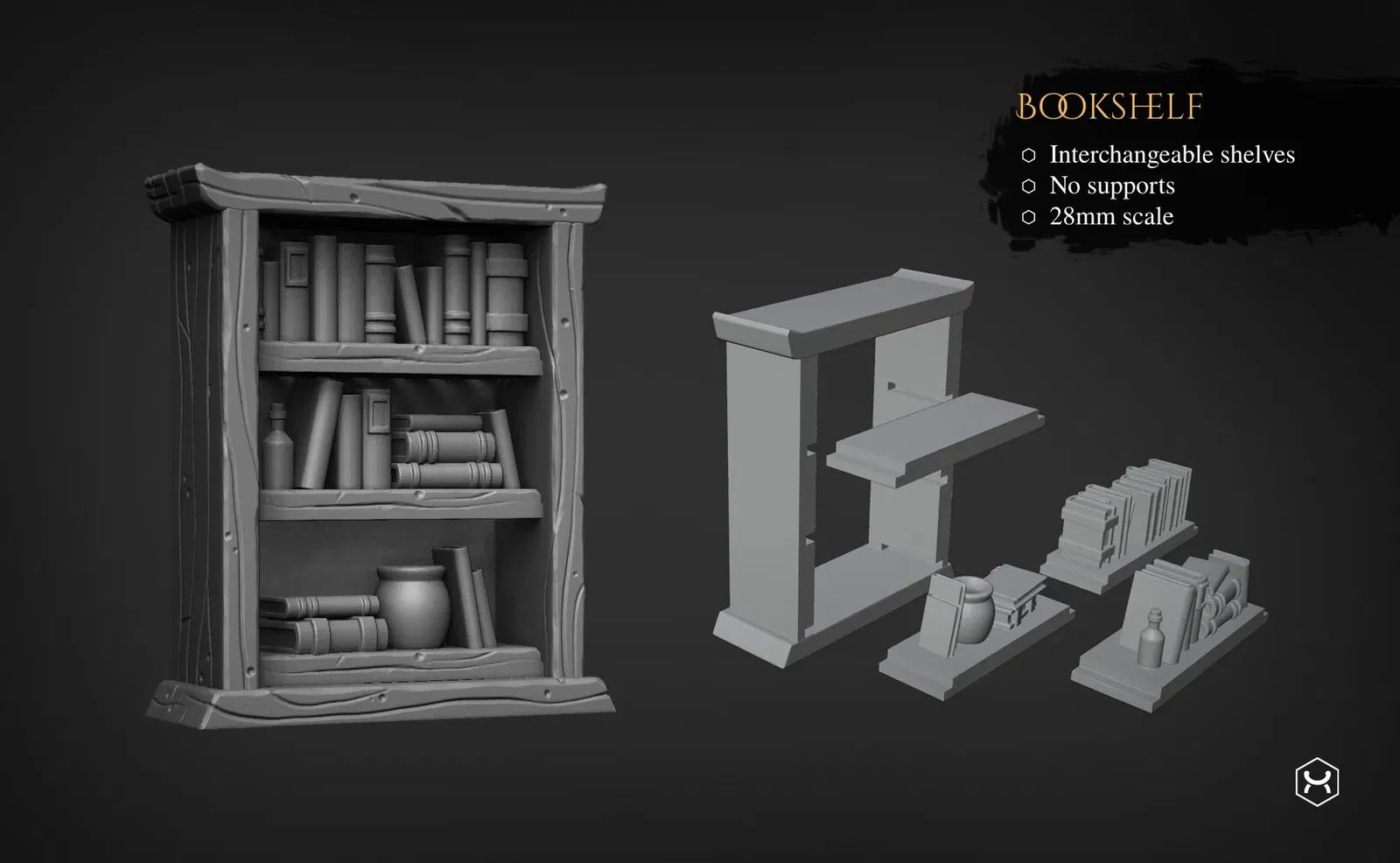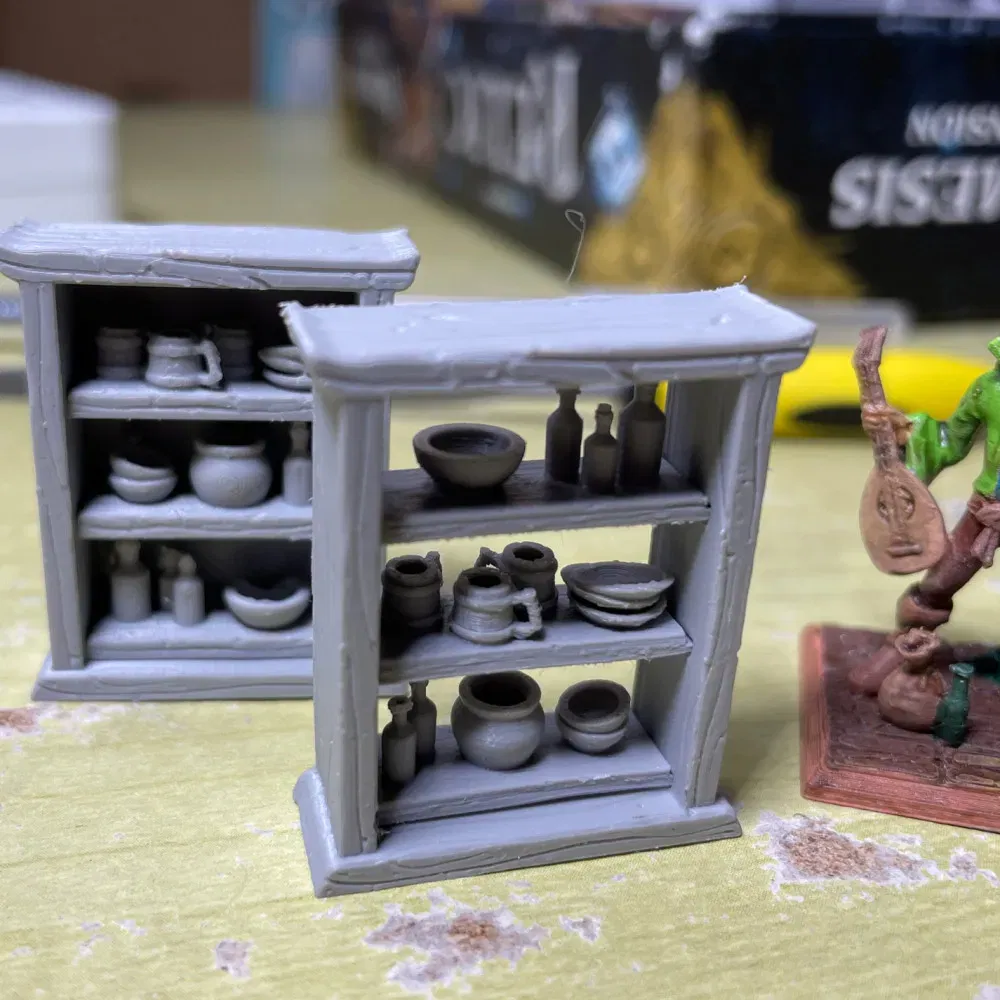 Kệ sách và tủ với các kệ có thể thay đổi cho trò chơi trên bàn. Đối với máy in FDM: Tôi khuyên bạn nên in với một lớp viền nếu bạn gặp vấn đề về độ bám dính, vì các kệ rất nhỏ và có thể bị cong và bật ra khỏi mặt bàn. Trong trường hợp này, bạn sẽ cần phải mài chúng một chút để chúng vừa vặn trong hộp. —————————————————————————— Màn hình của Người Điều Khiển Dungeon Phiên Bản 2.0 sắp ra mắt! Màn hình DM tiếp theo từ Gracewindale sắp ra mắt! Chúng tôi đã lắng nghe bạn và sẽ cố gắng hết sức để đảm bảo phản hồi của bạn được thực hiện: tính di động, thẩm mỹ, tính khả dụng! Nhấp vào đây để xem dự án trước đó Đăng ký tại đây và là người đầu tiên biết khi Màn Hình Người Điều Khiển Dungeon II ra mắt và nhận chỗ sớm! https://promo.gracewindale.com/lp/sk8k4/dm-screen —————————————————————————— Tất cả các thiết kế của tôi được bảo vệ bởi luật bản quyền. Khi tải xuống, bạn đồng ý sử dụng các tệp chỉ cho mục đích cá nhân. Điều này có nghĩa là bạn KHÔNG có quyền bán các bản in 3D của các tệp kỹ thuật số, bao gồm cả việc bán các sản phẩm từ khuôn. Nếu bạn muốn bán hợp pháp các bản in 3D của các mô hình của tôi, vui lòng tham gia cấp thương mại trên Tribe của tôi hoặc liên hệ với tôi để biết các tùy chọn khác. Các liên kết bên dưới! Các tệp kỹ thuật số (.stl và các định dạng khác) không bao giờ được bán lại, chia sẻ, remix hoặc cho đi. Giấy phép Thương mại: - Đăng ký: [ Giấy phép Thương mại ]