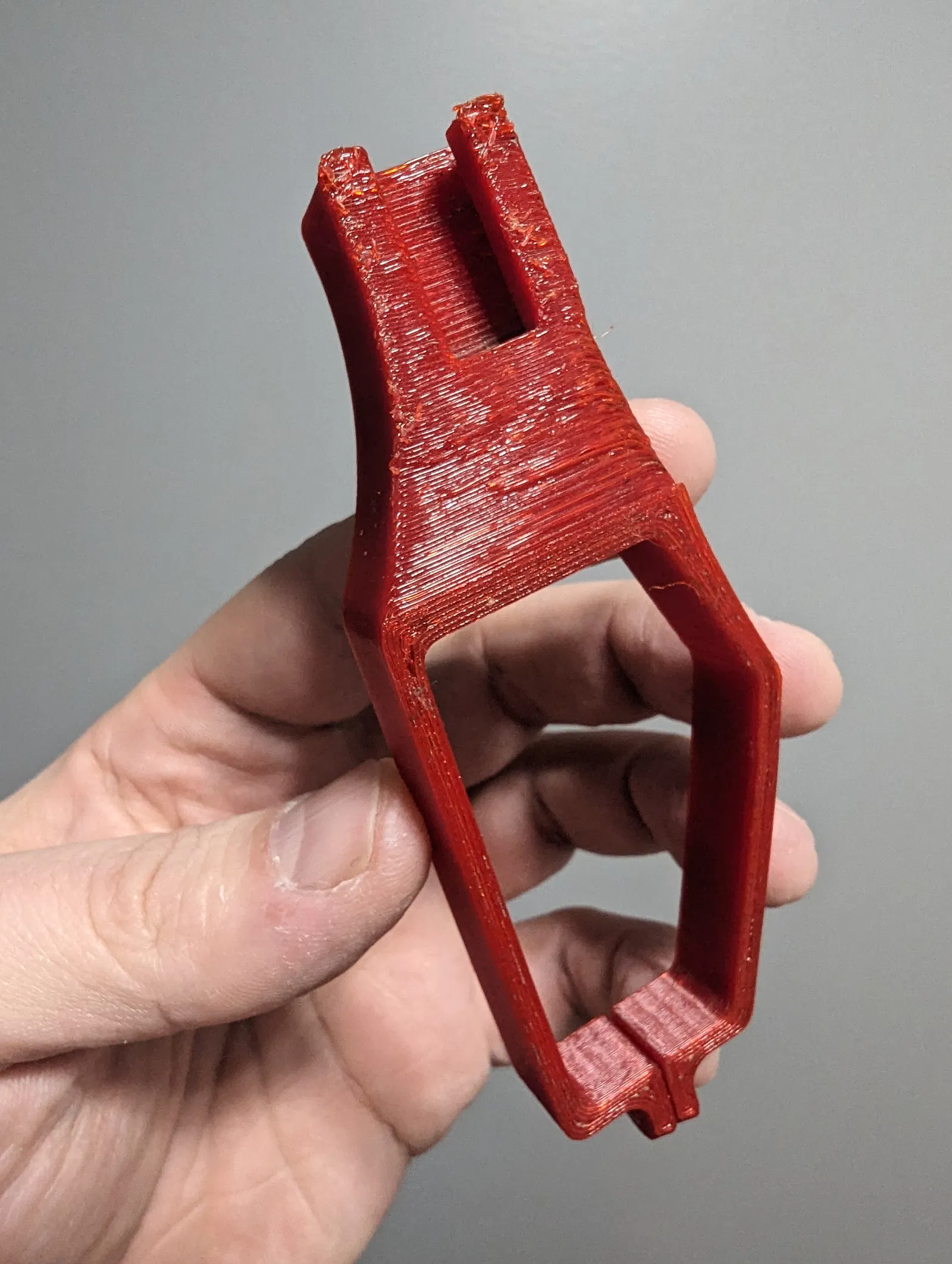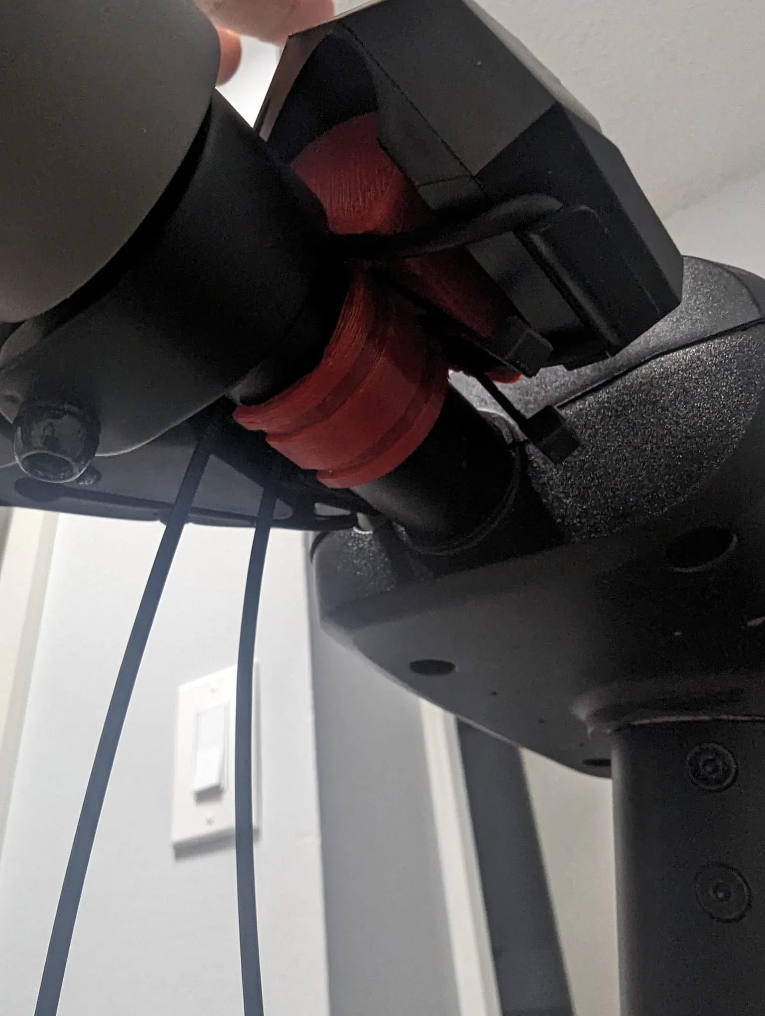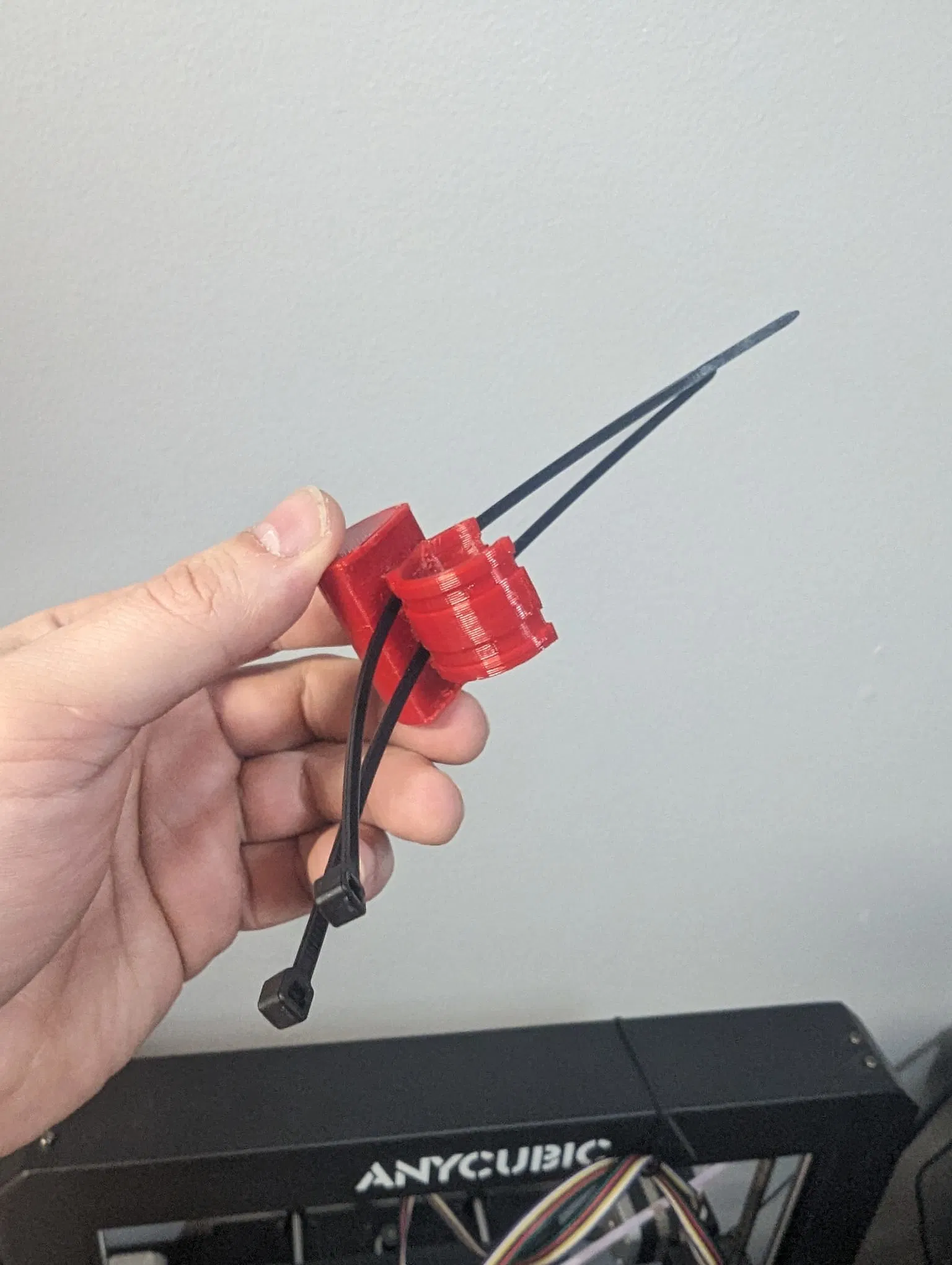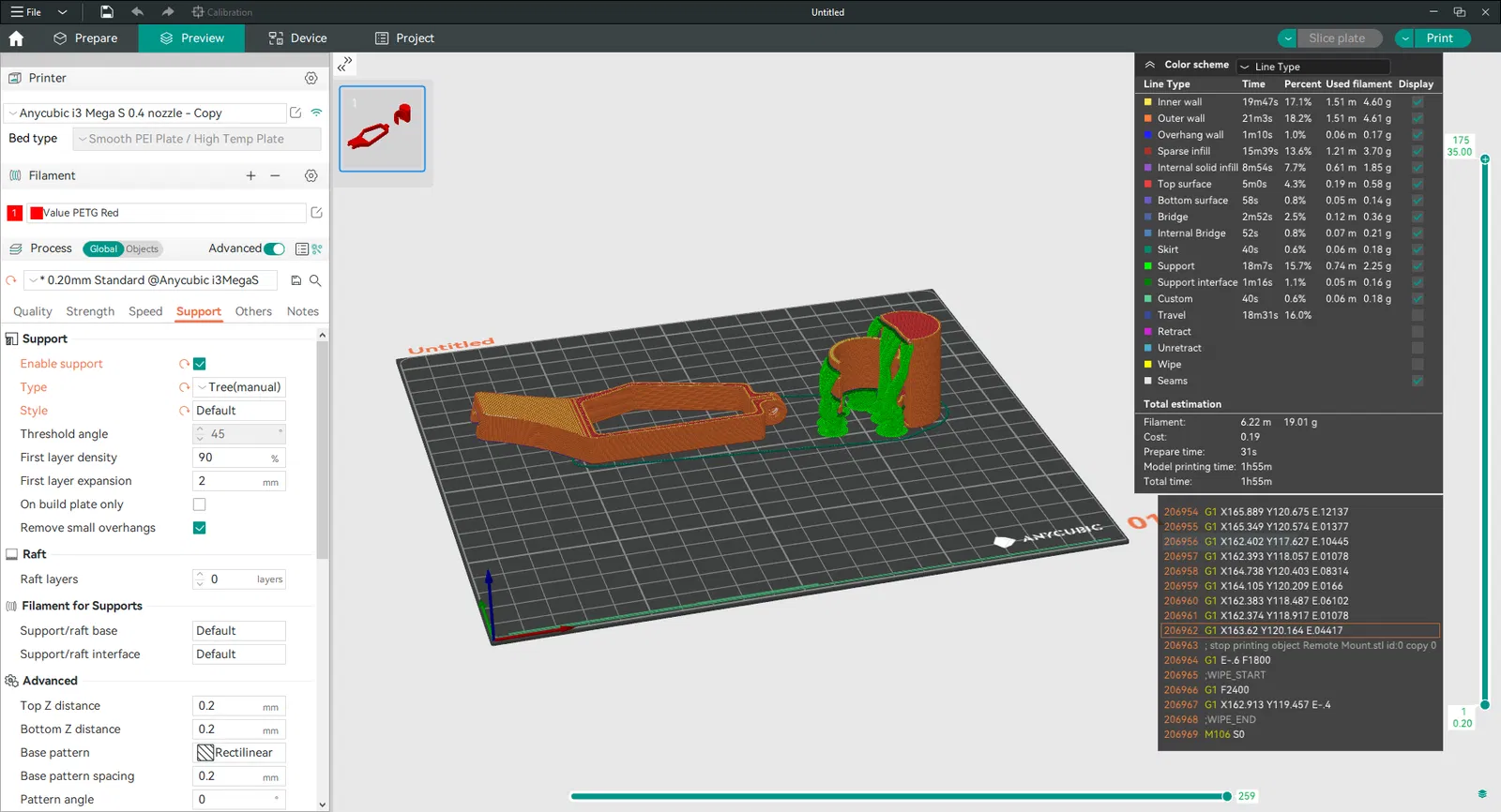In bằng PETG. Giá đỡ tín hiệu có thể in mà không cần hỗ trợ, đặt úp mặt xuống, không đẹp lắm nhưng vẫn xài được. Giá đỡ remote sẽ cần hỗ trợ, tốt hơn nếu tô màu thủ công, bạn không muốn slicer thêm hỗ trợ vào bên trong các rãnh dây rút.