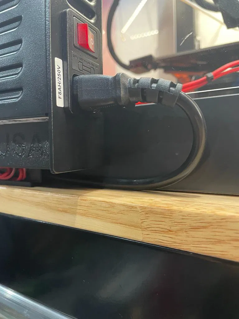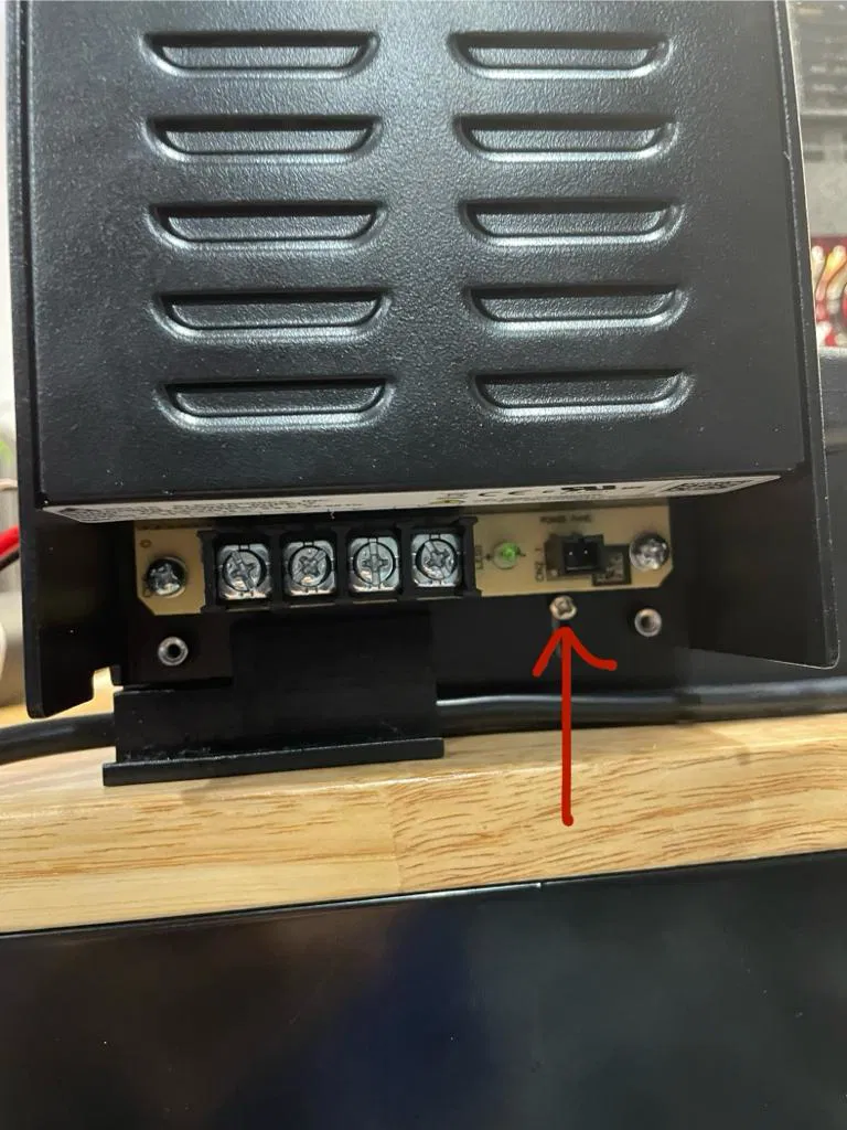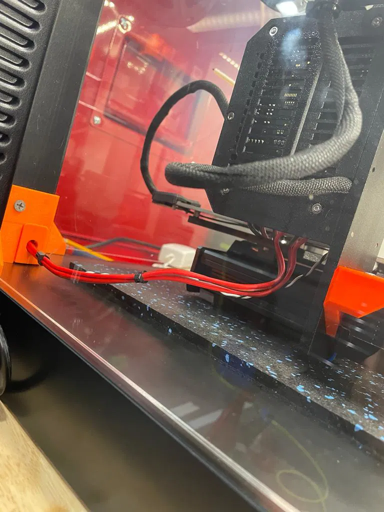 Treo nguồn máy in Prusa ở cạnh bên, mép sau của hộp IKEA Lack để tiết kiệm diện tích, đặt sát tường và rút ngắn dây cáp OEM.