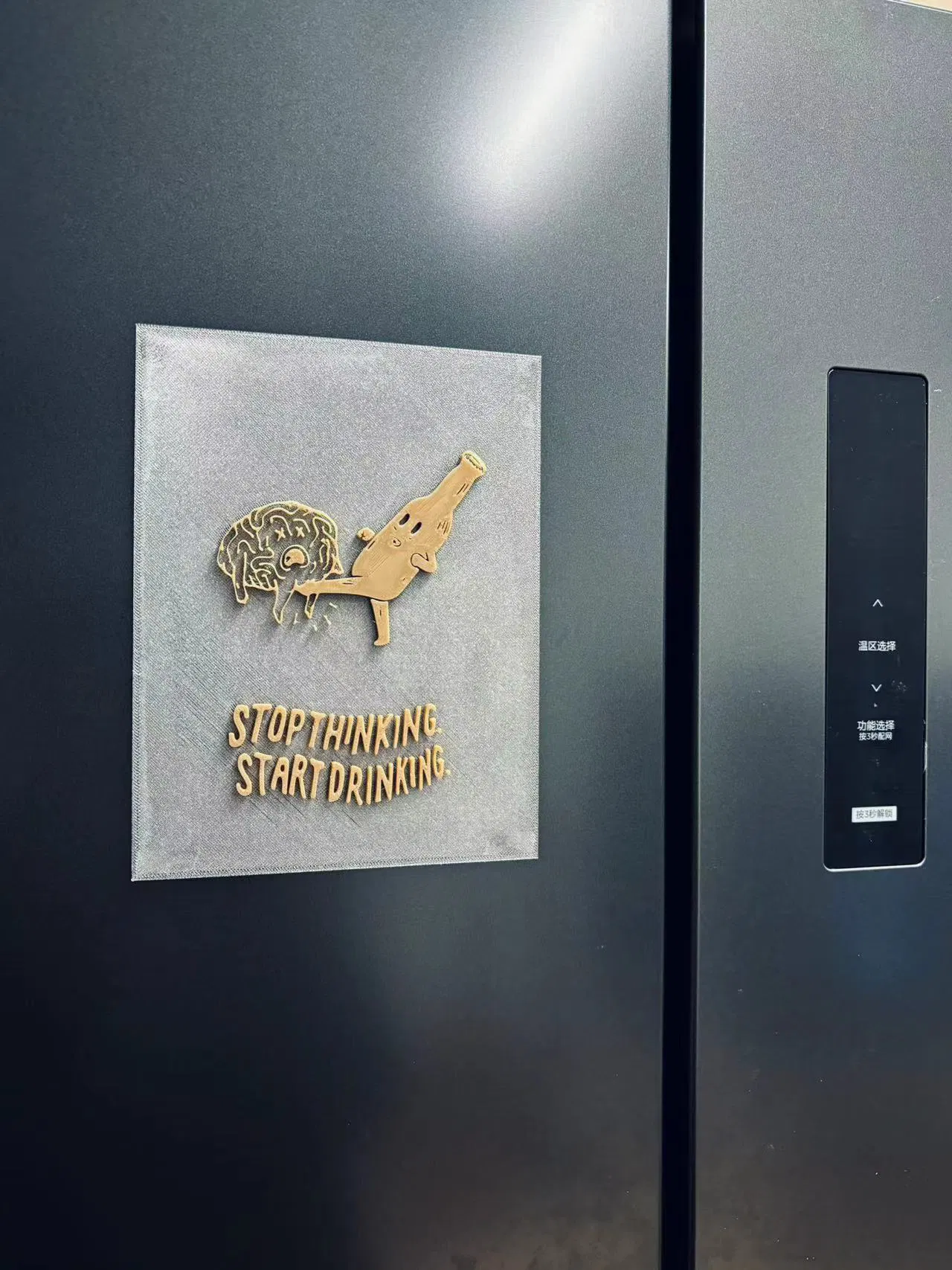 Biến tấu từ biển hiệu quán bar hài hước, chiếc móc tủ lạnh này có nền siêu mỏng (0.16mm) giúp tôn lên màu tủ lạnh của bạn. Dùng đầu phun 0.2mm và nhớ cẩn thận khi lấy ra khỏi mâm in nhé!