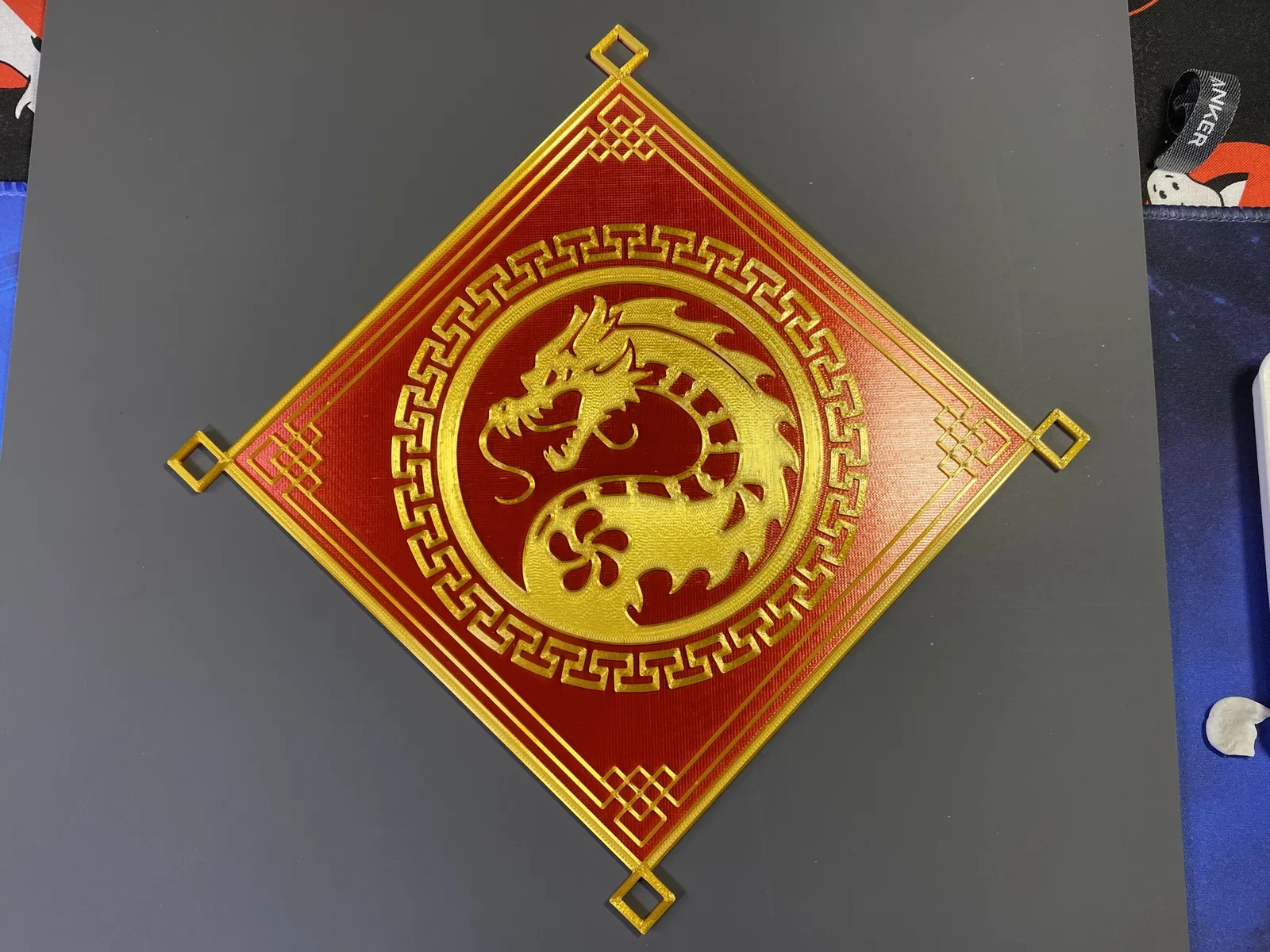 Trang trí rồng treo tường đi kèm với đế lót ly rồng hôm qua, treo lên để cầu may mắn cả năm! Đổi màu sợi in ở độ cao trên 1mm. Chúc mừng Năm Mới Âm Lịch và Chúc in ấn vui vẻ!