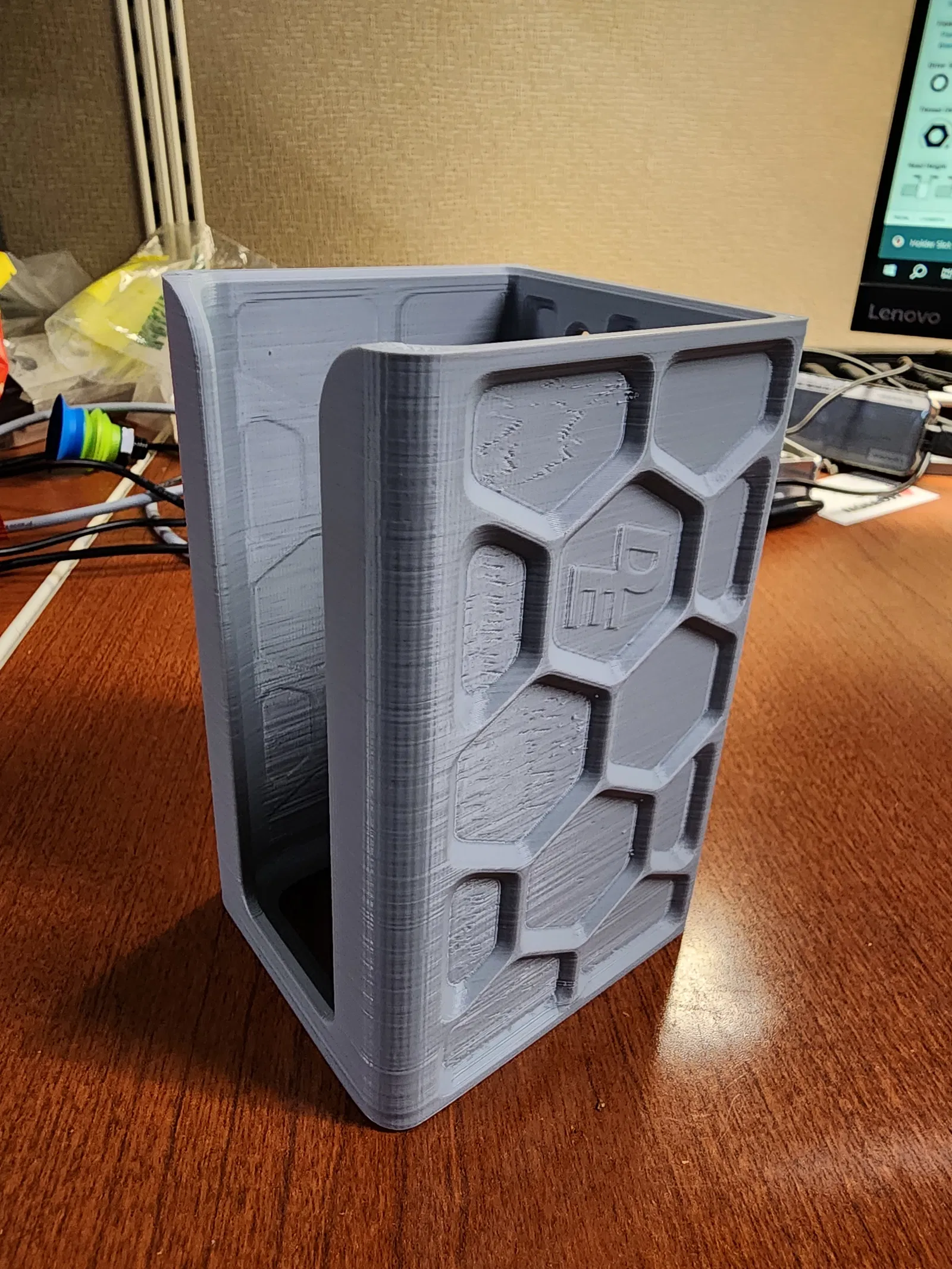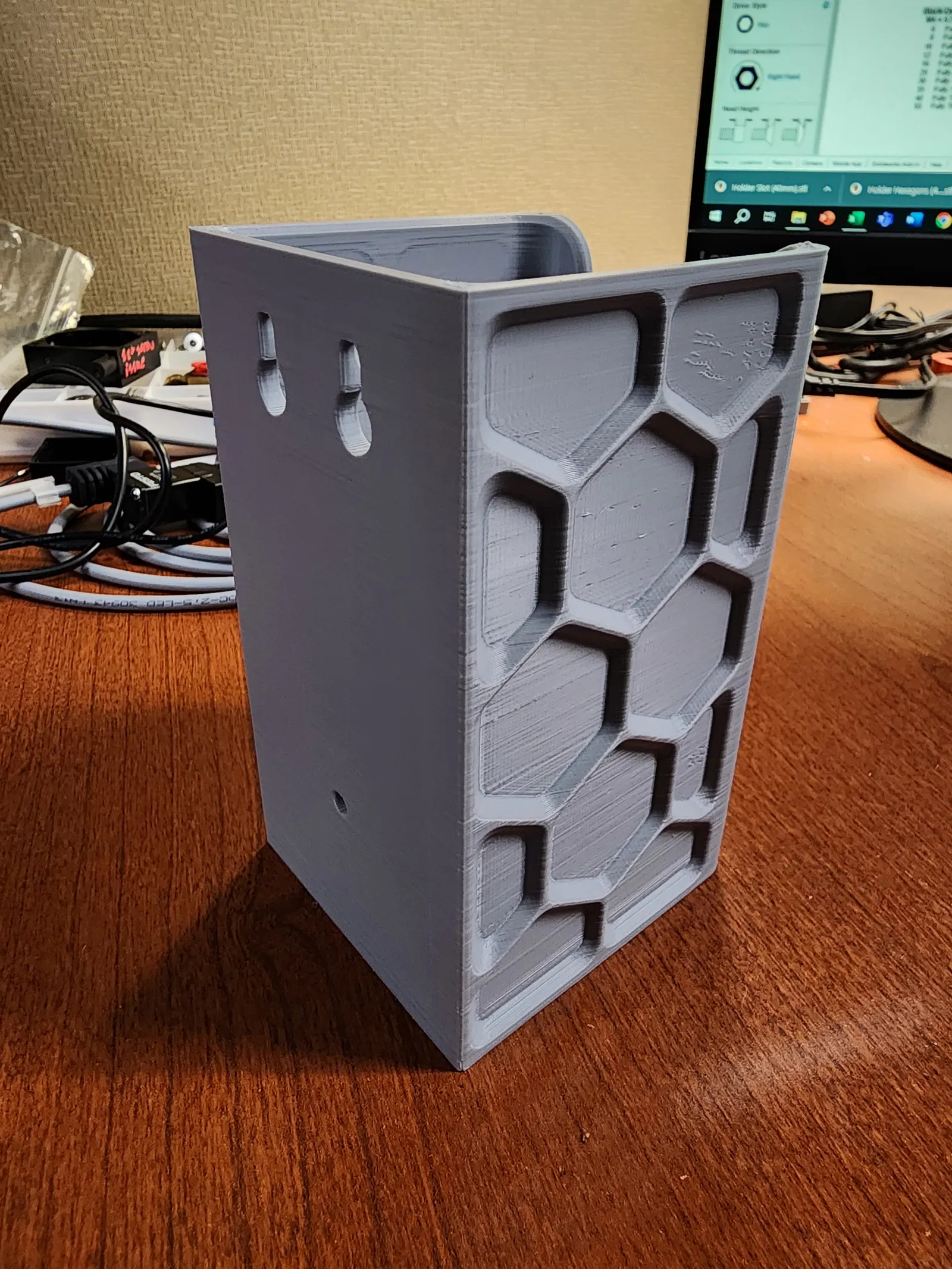 Các phiên bản khác của giá đỡ máy khoan này tích hợp các lỗ cắt hình lục giác rất lớn, nhưng chúng vẫn yêu cầu nhiều sợi nhựa hơn mô hình này và trong hầu hết các trường hợp, tốn nhiều thời gian hơn. Các lỗ cắt lớn này cũng có thể làm giảm độ cứng/độ bền của giá đỡ của bạn, trong khi các đường gân hình lục giác có thể mang lại giá đỡ chắc chắn, cứng hơn bằng cách loại bỏ các lỗ không cần thiết.