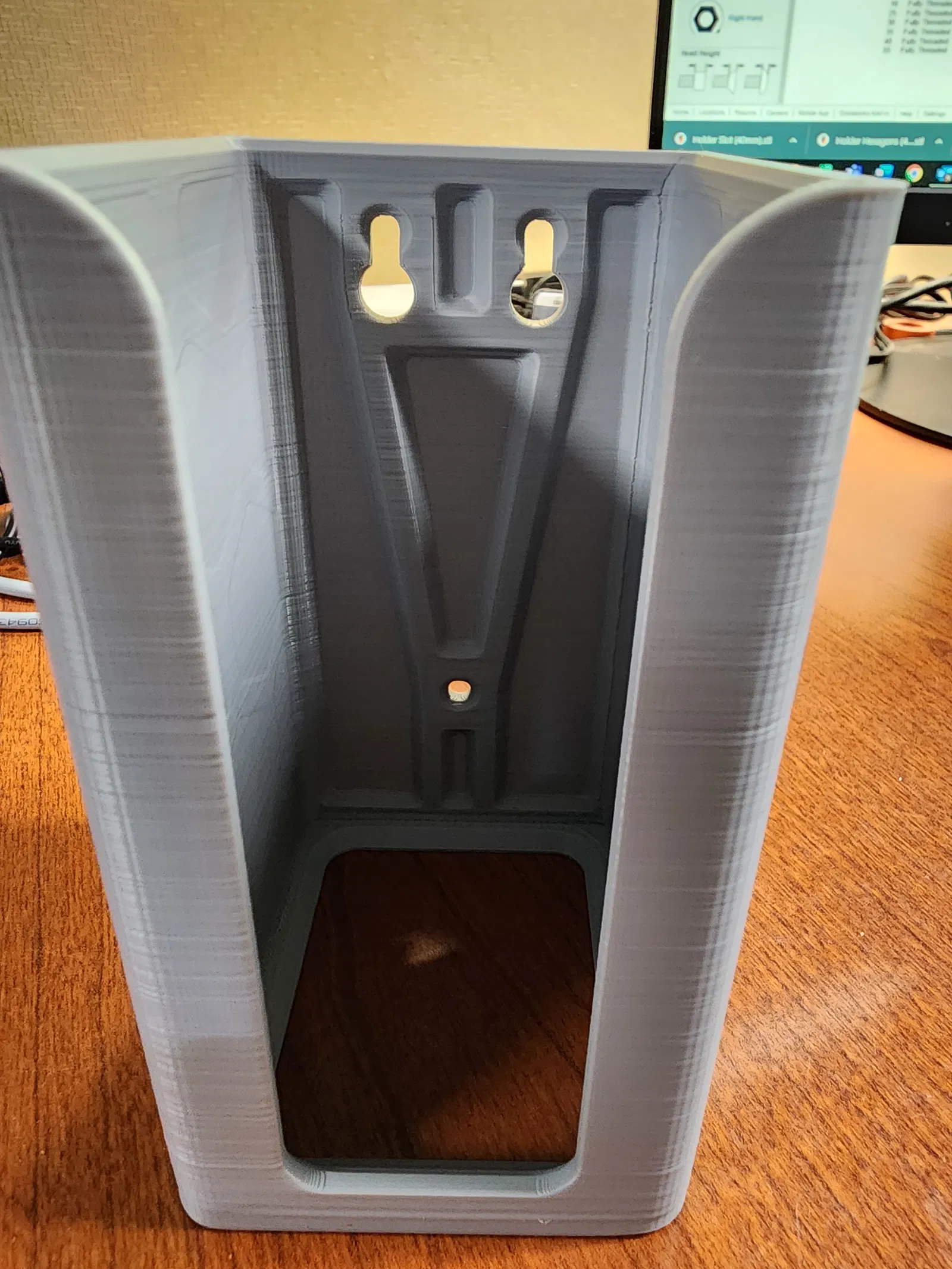 Tôi đã giảm số lượng ốc vít cần thiết để gắn giá đỡ từ 6 xuống còn 3. Tôi cũng đưa các lỗ lại gần tâm của bộ phận hơn một chút để dễ dàng tiếp cận ốc vít khi lắp đặt. Hai lỗ phía trước được thiết kế khe để bạn có thể đặt trước ốc vít phía trước rồi trượt bộ phận vào để hoàn tất việc lắp đặt. Ốc vít phía sau khóa chặt nó. Tất cả các lỗ vít đều được khoét lỗ cho một chỗ giữ chắc chắn. khu vực gắn cũng có các đường gân giúp giảm đáng kể việc sử dụng vật liệu.