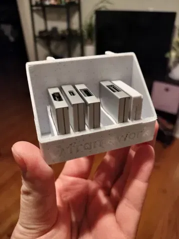 Tui mới sắm con Framework 13, xài khoái lắm, mà mấy cái card mở rộng dư ra cứ nằm lăn lóc trên bàn, dễ mất quá trời. Nên tui chế ra cái này.