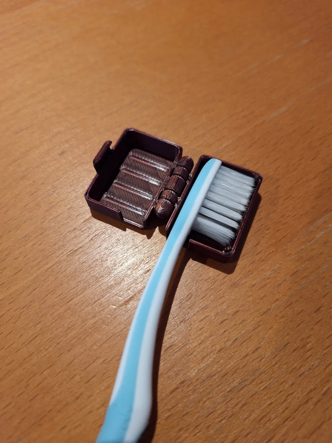 Hộp đựng bàn chải đánh răng lý tưởng cho việc đi du lịch. Thiết kế "print in place" mượt mà, có lỗ thông hơi và khóa đơn giản. In nhanh chỉ 24 phút bằng PLA/PETG, không cần support. Có 2 tùy chọn dung sai bản lề.