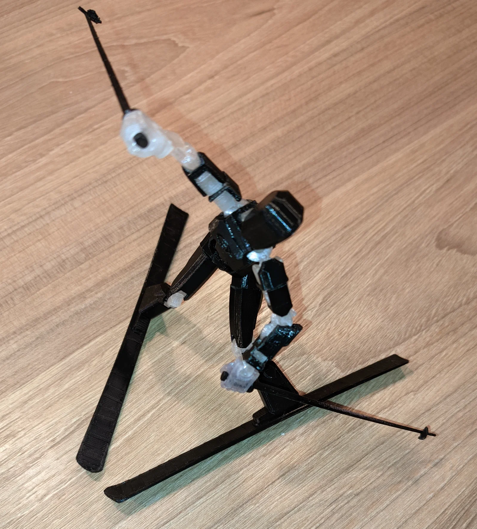 Bộ đồ trượt tuyết và gậy trượt tuyết. Người dùng lưu ý rằng họ đã sử dụng cùng cài đặt với mẫu gốc, nhưng máy in của họ chưa được tinh chỉnh, vì vậy gậy trượt tuyết có thể bị lỏng.