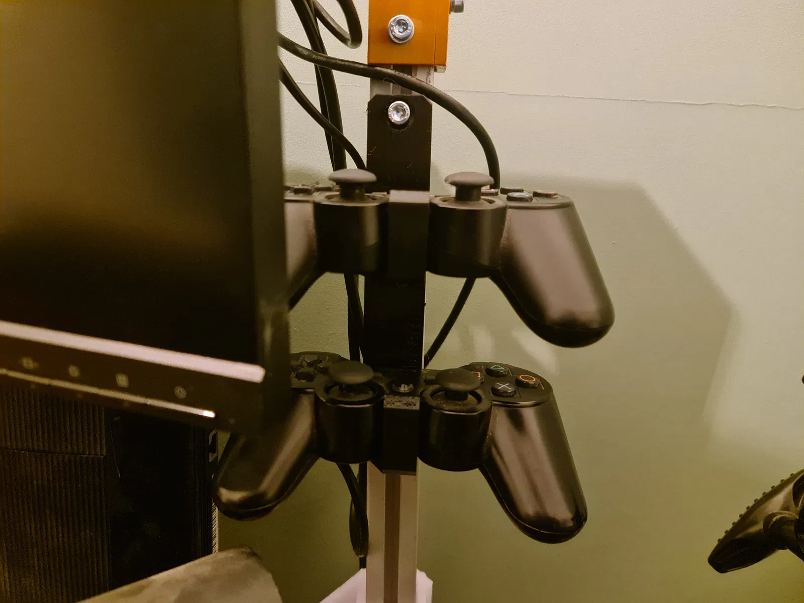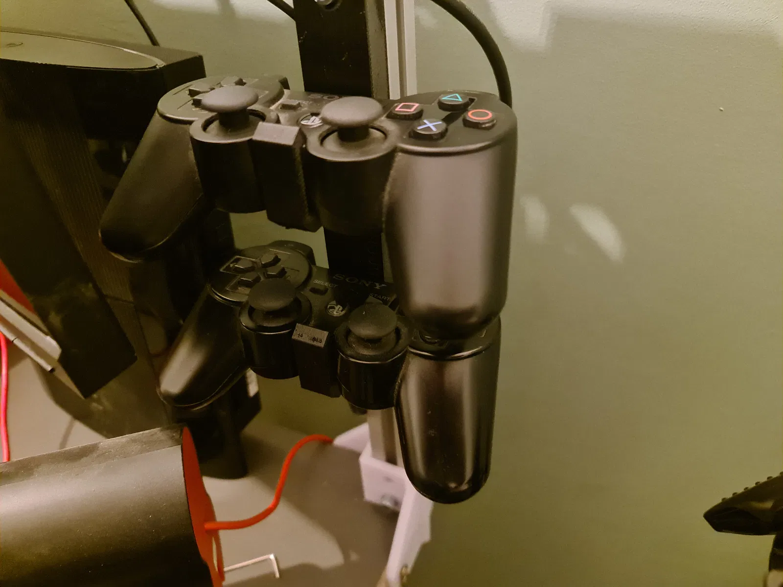 Đừng tìm đâu xa nữa! Cái giá đỡ tay cầm Playstation 3 đôi này là tất cả những gì bạn cần! Chỉ cần in ra, rồi bắt vít lên tường hoặc gắn vào thanh nhôm 20x20 mà bạn có sẵn trong không gian của mình, là xong, bàn làm việc gọn gàng liền.
