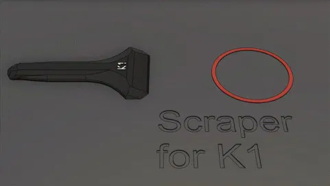 Một dụng cụ cạo chuyên dụng giúp bạn dễ dàng loại bỏ các vết nhựa thừa bám trên bàn in của máy in 3D K1, giữ cho bề mặt in luôn sạch sẽ và sẵn sàng cho các bản in tiếp theo.
