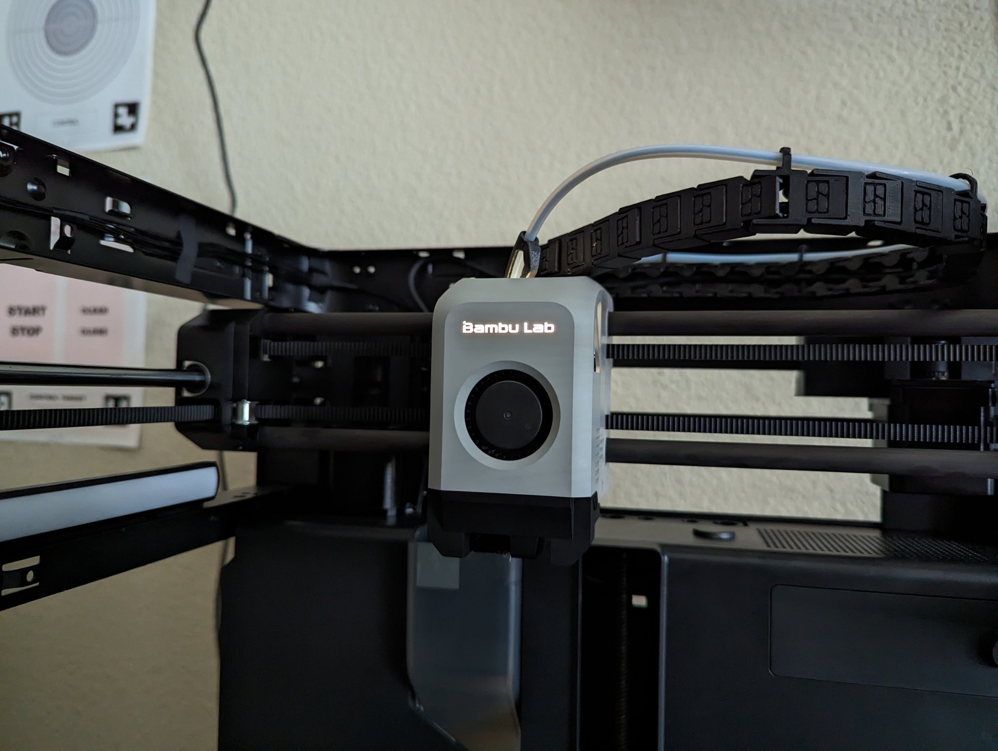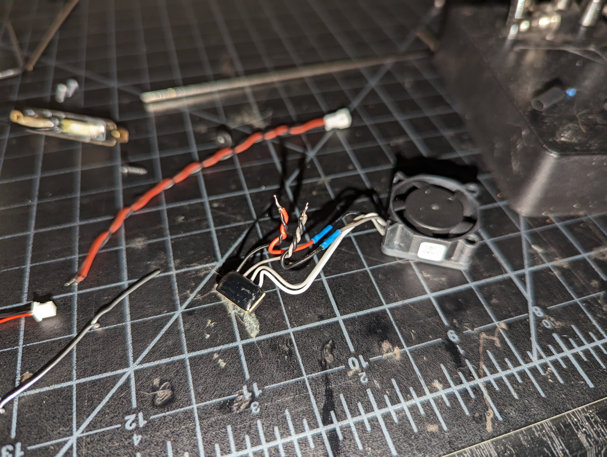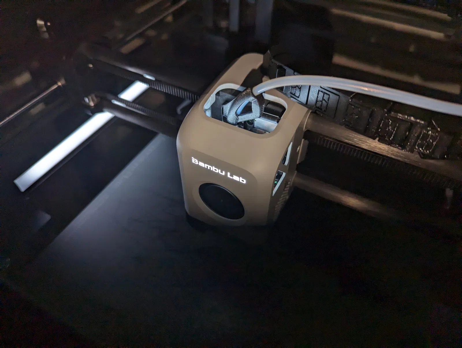 Tôi đã mua Bộ lắp ráp Vỏ trước - Dòng X1 và cáp LED LOGO kết nối. Tôi chỉ đơn giản là nối vào quạt hotend 5v dương và âm. Tham khảo hình ảnh để biết màu dây và xác định +/- . Điều này yêu cầu hàn và kỹ năng. Tôi nghĩ rằng ai đó có thể hưởng lợi từ thông tin này. Dây quạt: Đen - Xám đậm + Hai bức ảnh cuối cùng được hiển thị với phần chèn màu sau (tôi đã sử dụng Hatchbox PETG màu đồng). Ánh sáng LED quá sáng, vì vậy đây chắc chắn là một chi tiết cuối cùng cần thiết. ### [Bambu Labs Hotend LED Colored Insert (Remix) ["Glass" profile for Bambu Studio included] (Dual color available) by Roland Deschain | Download free STL model | F3D.com]()