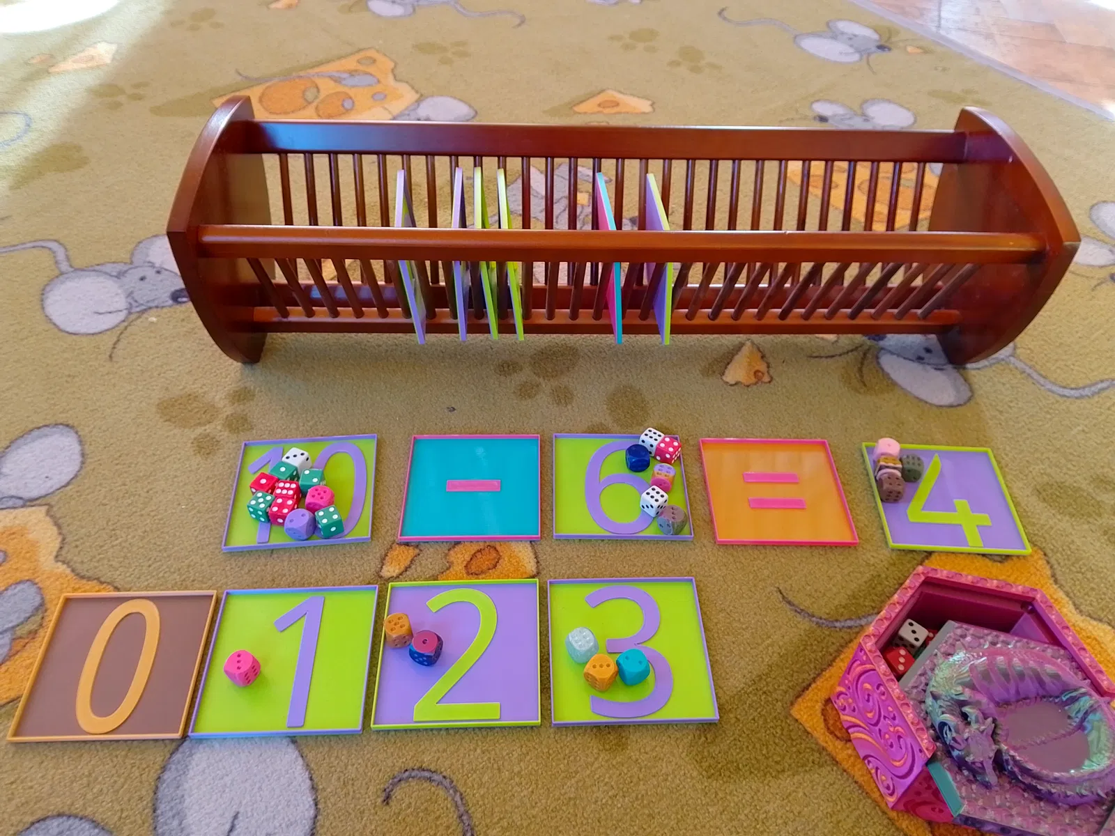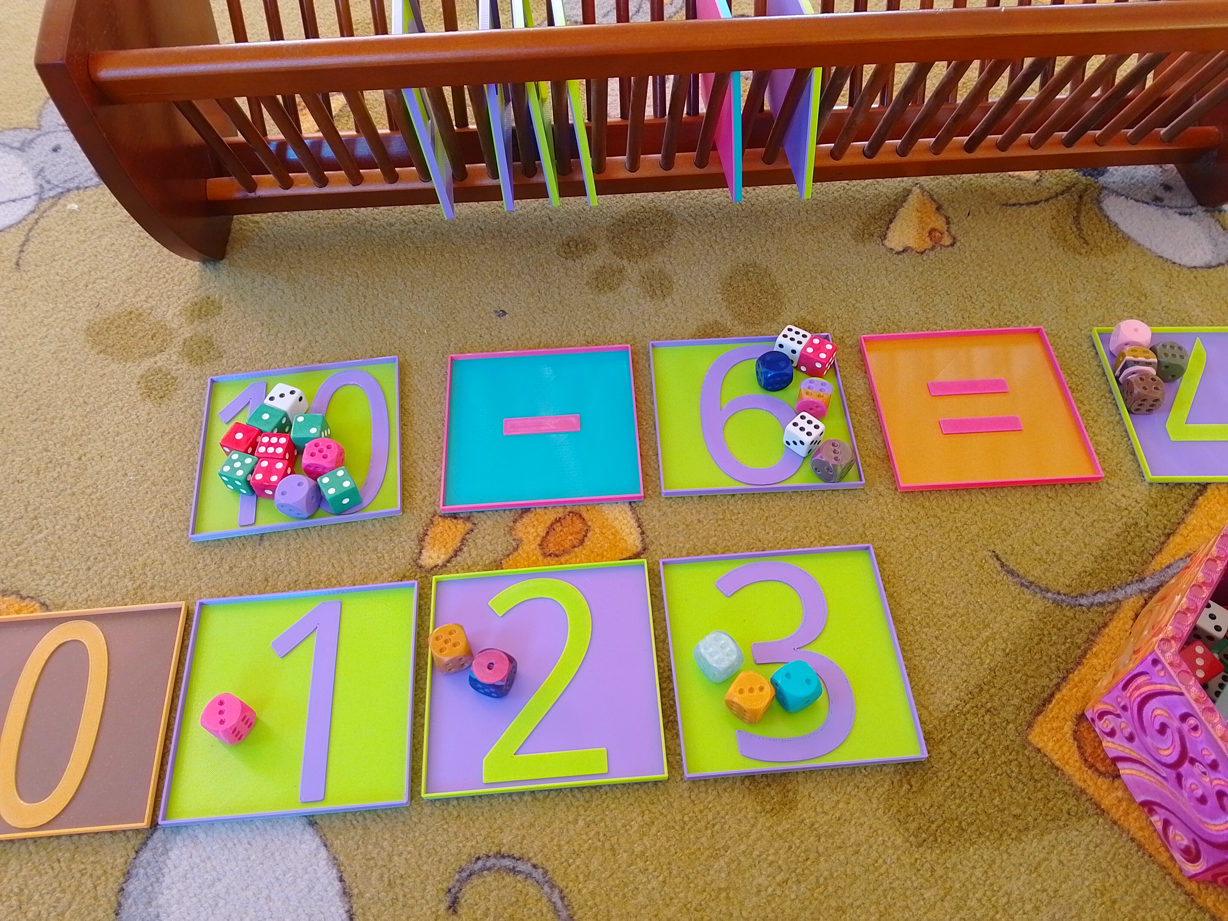 Những chiếc tô học toán dành cho học sinh lớp một. Bé sẽ đặt đồ vật vào tô theo số lượng tương ứng với số trên tô. Ví dụ, bạn có thể in ra hoặc lấy từ đồ chơi một số lượng lớn các khối vuông, hoặc các nhân vật trò chơi, con vật, v.v. và cho các bé xếp 5 cái vào tô có số 5, và cứ thế tiếp tục...