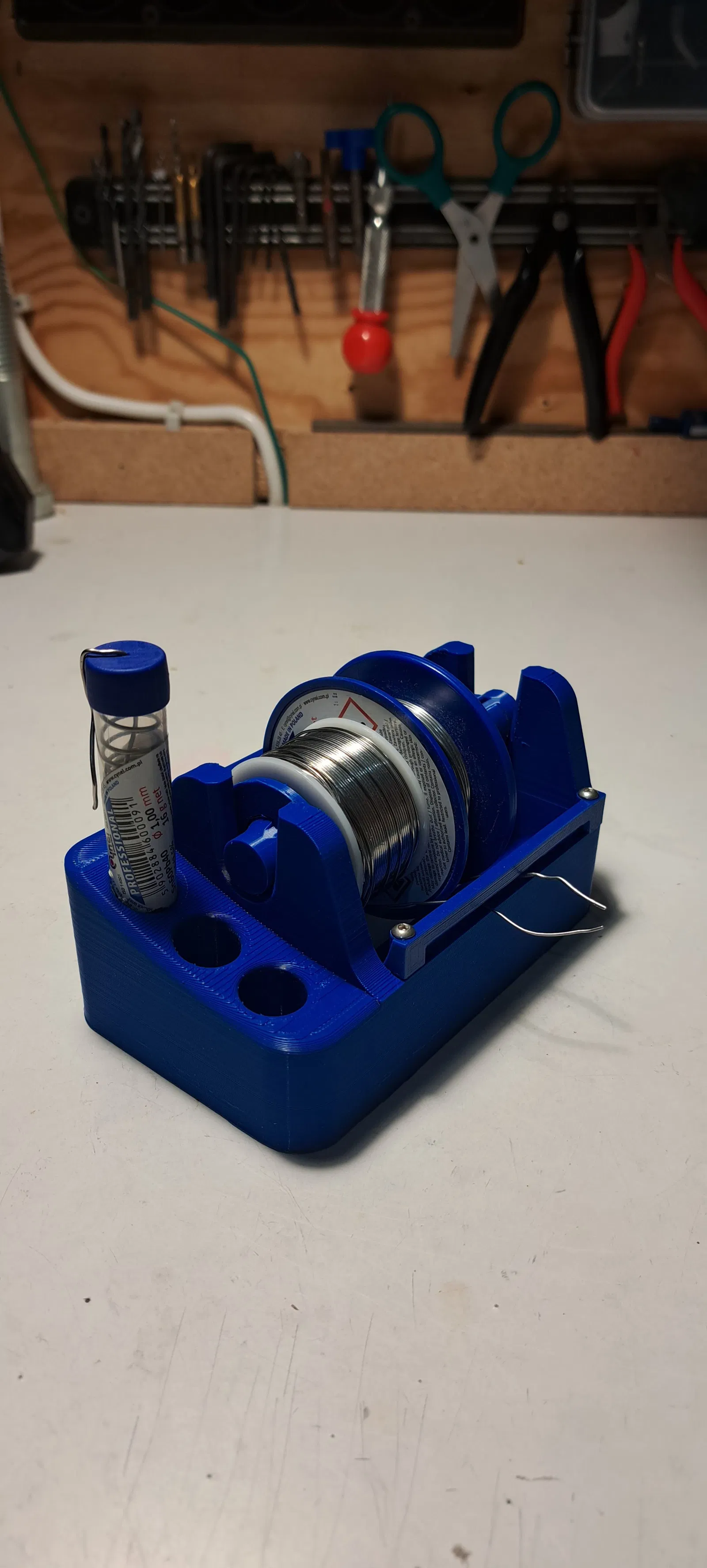Chỗ đựng lý tưởng cho dân mê đồ điện tử, giúp không gian làm việc gọn gàng và lấy dây hàn thiếc tiện lợi. In 3 mảnh, không cần support, có hướng dẫn gắn adapter.