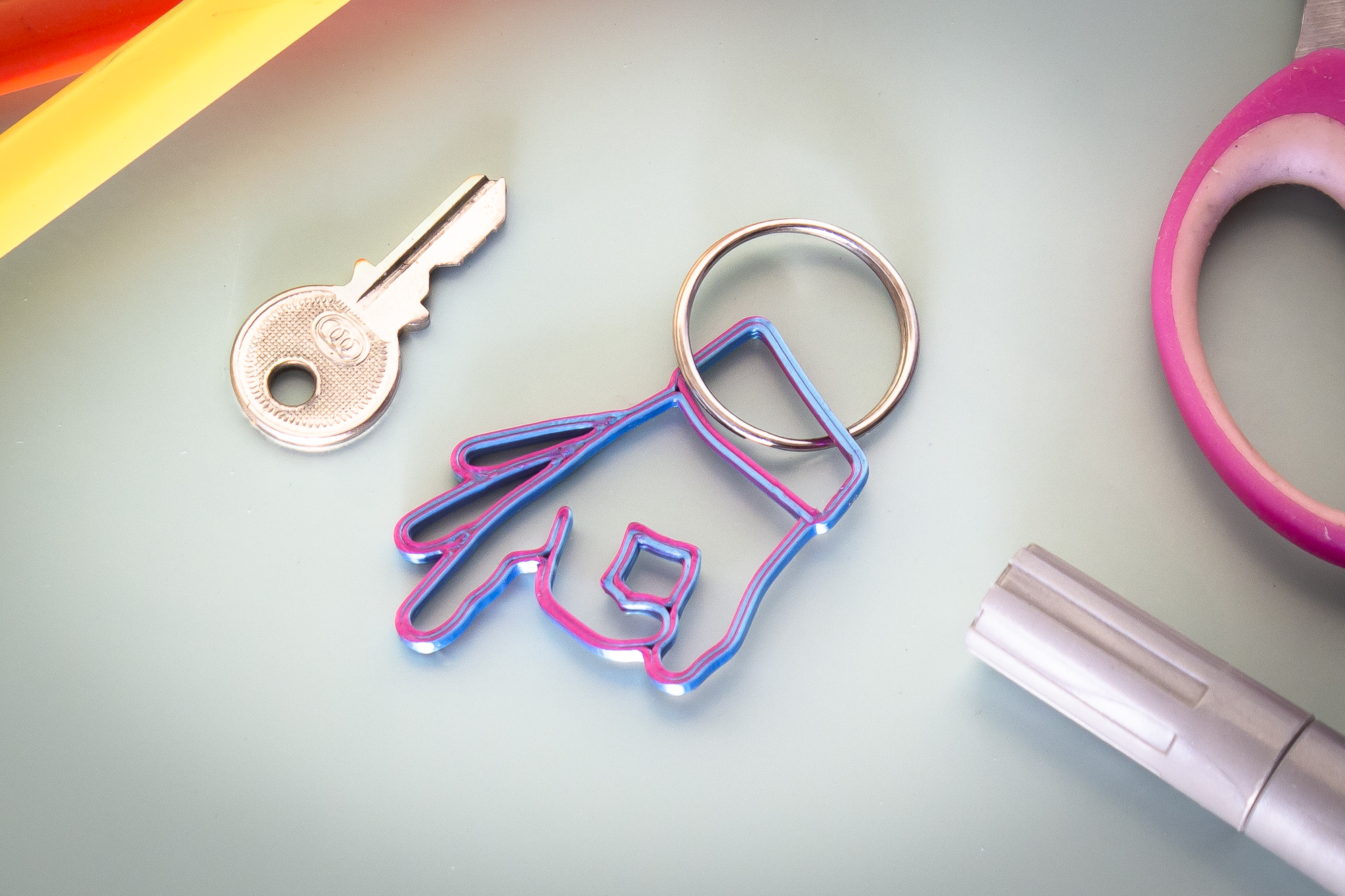 Móc khóa "Nhìn Kìa" độc đáo, thiết kế nhanh gọn, dễ in. Là một phần của bộ sưu tập 'Last meters' với ý tưởng hình tròn và ngón tay bắt lấy, tạo hiệu ứng thu hút. Thích hợp làm quà tặng, vật trang trí.