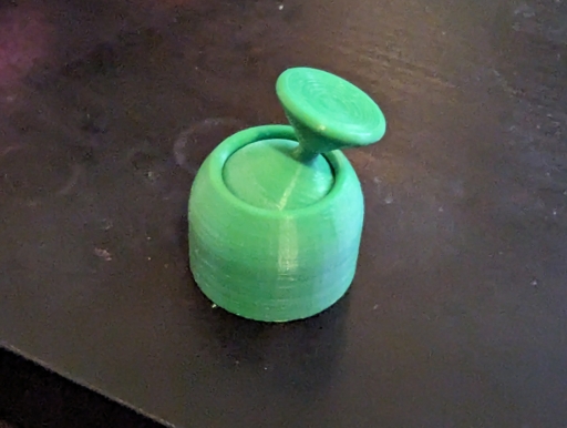 Một món đồ chơi fidget dạng cần điều khiển có lò xo và nam châm. Cần điều khiển không tự về tâm nhưng mang lại cảm giác thú vị khi chơi, với khả năng điều chỉnh độ đàn hồi bằng cách vặn phần đế.