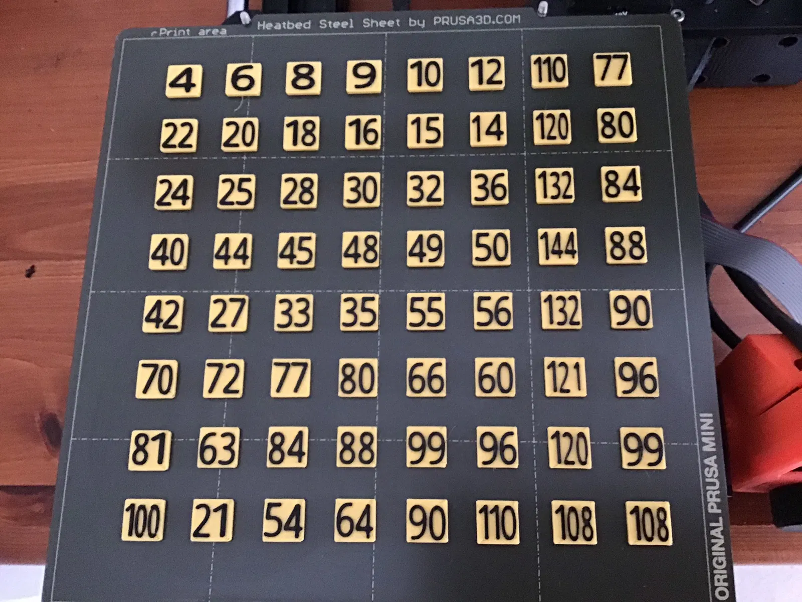 Mô hình lưới và các ô số giúp các bé học bảng cửu chương dễ dàng hơn. In bằng nhựa PLA trên máy Prusa Mini+, có thay đổi màu sắc theo độ cao lớp in để tạo điểm nhấn và sự thú vị.