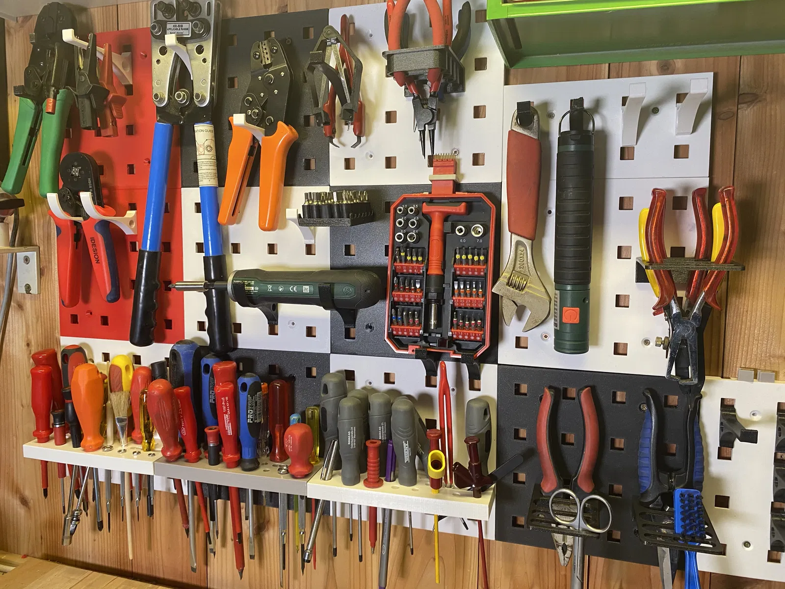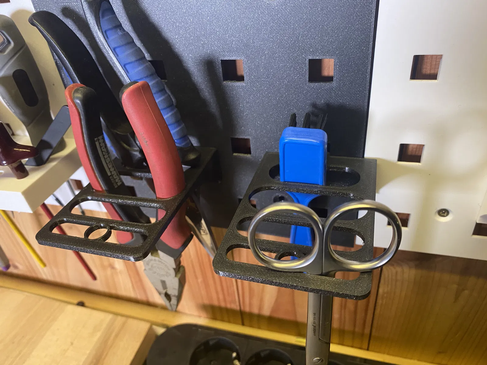 Bạn có thể tìm mấy module với mấy món khác trên printables, tên là "Tool Storage System - Brunos".