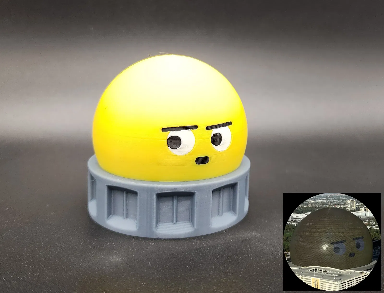 Tui đi coi Sphere hồi tháng Giêng thấy cái mặt này chiếu hoài, nên làm mô hình về cho anh em nè. Có kèm bản trống luôn, làm bằng Bambulabs tô màu cho AMS.