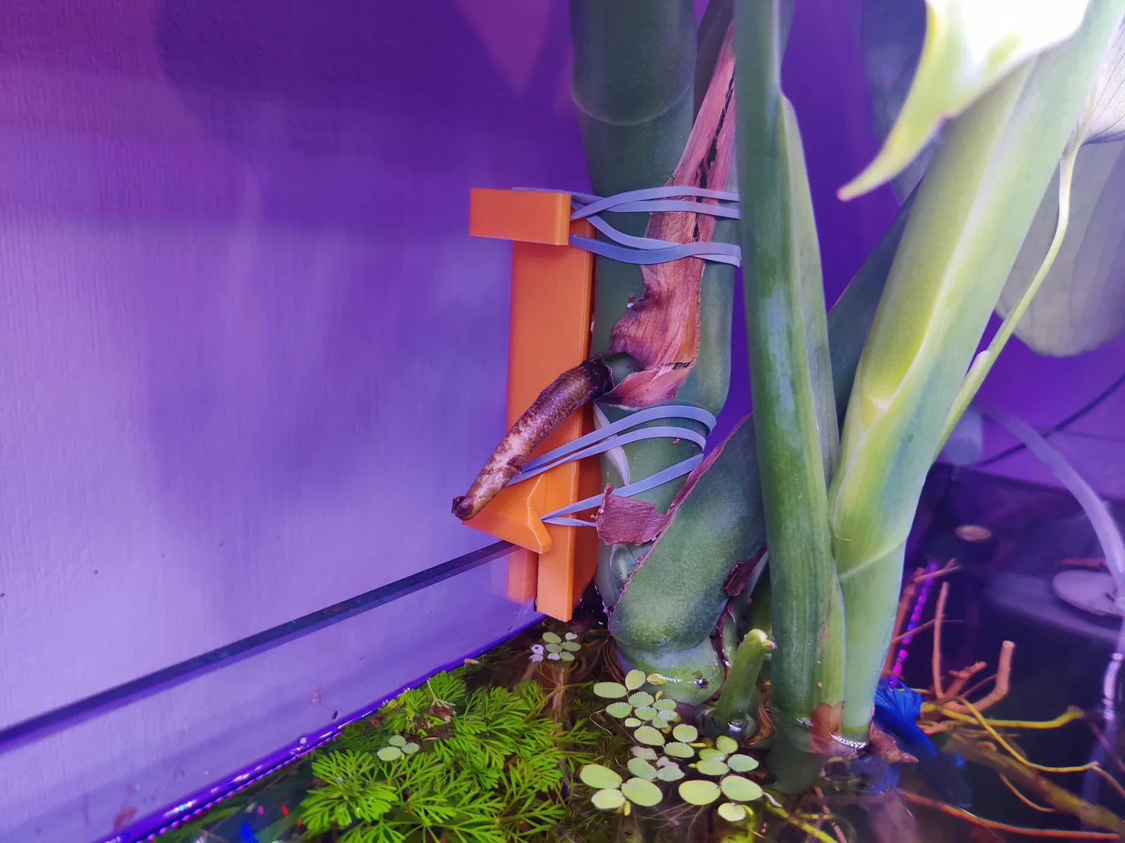 Một đế gắn cây thủy sinh chắc chắn, được thiết kế đặc biệt để giữ cho cây monstera bự của bạn bám vào thành kính hồ cá. Sử dụng ốc M3 và đai ốc, có kèm miếng nêm bảo vệ kính. Phù hợp cho kính dày tới 7mm. Khuyến khích in đế với 5 lớp tường để tăng độ cứng.