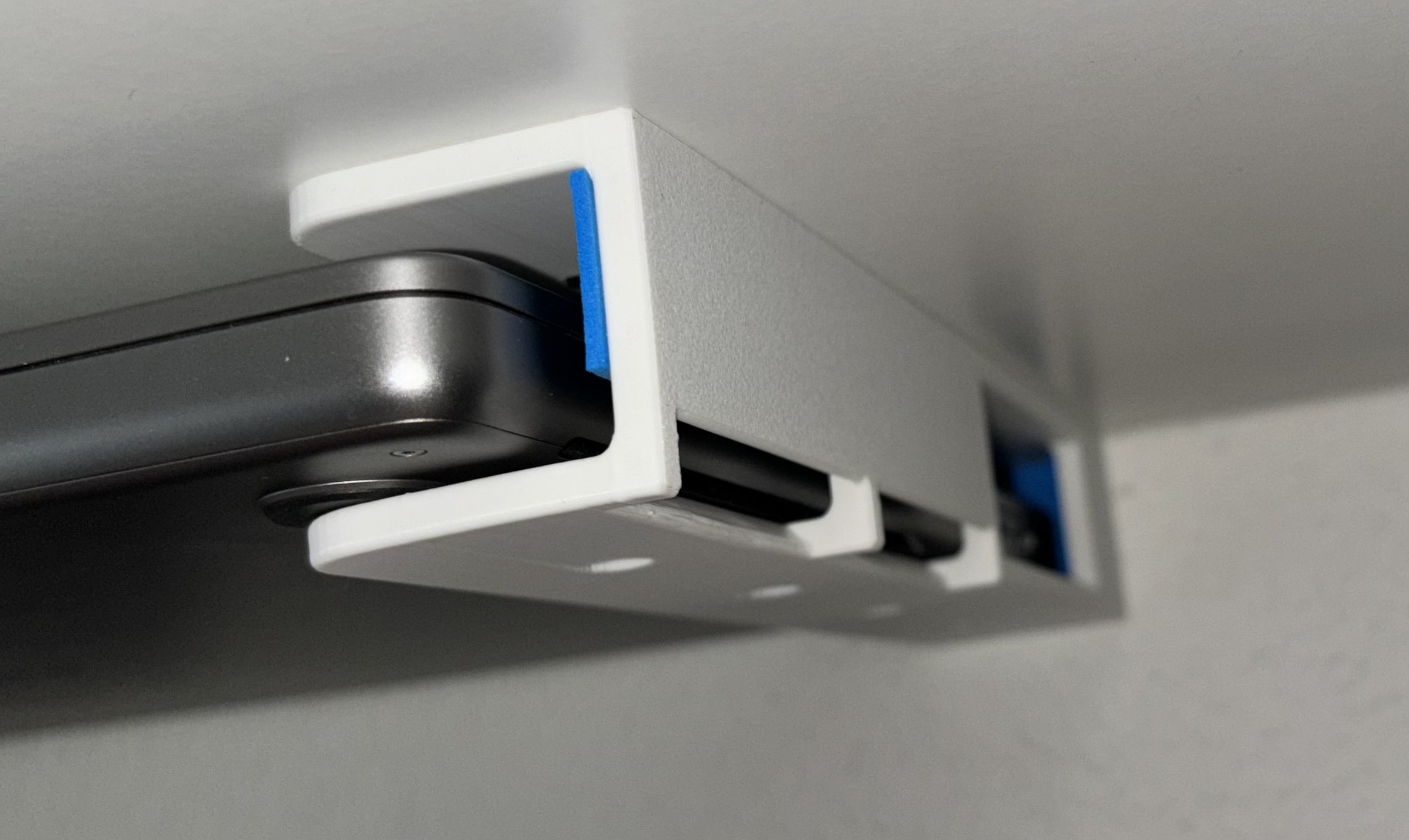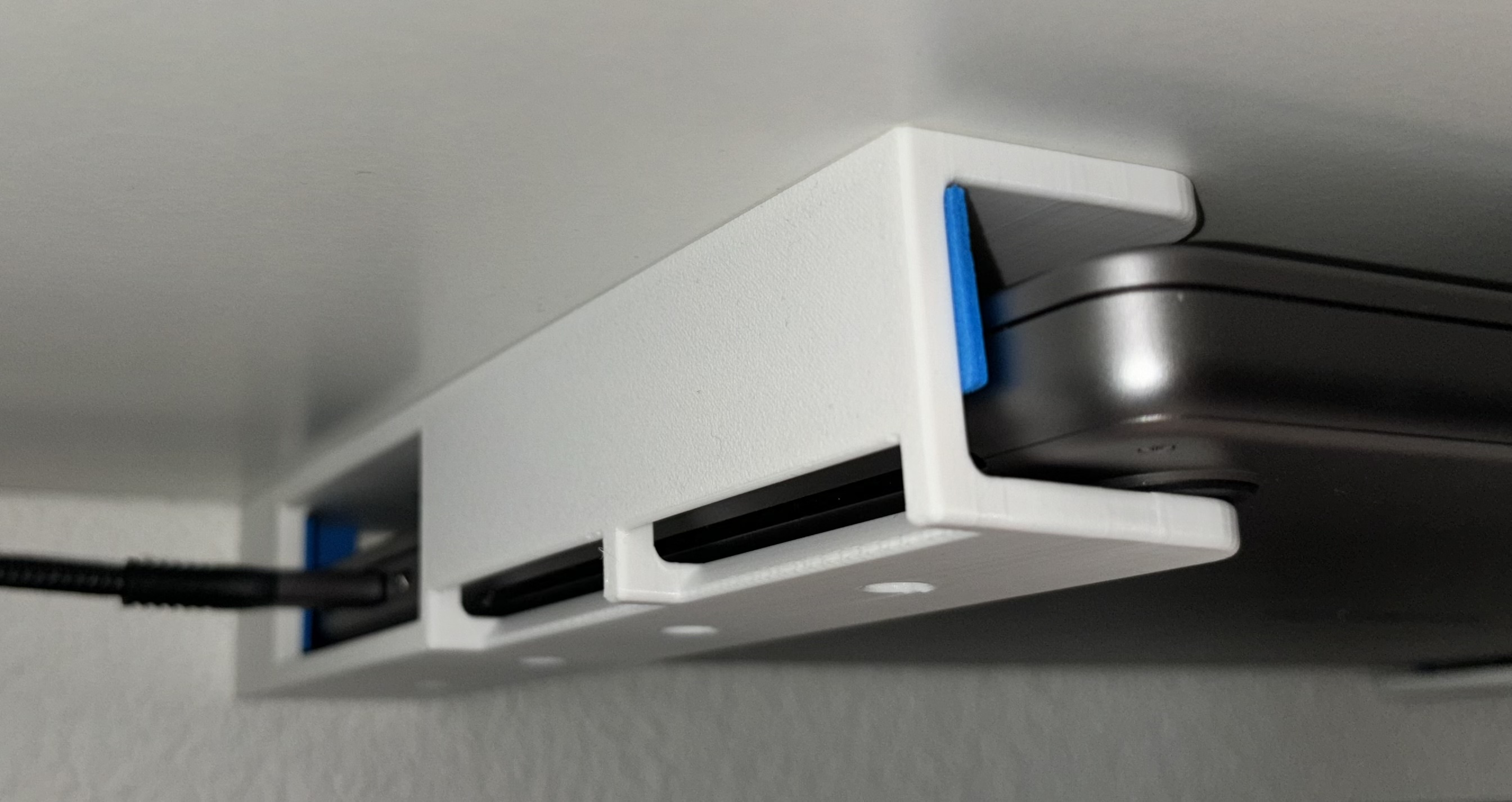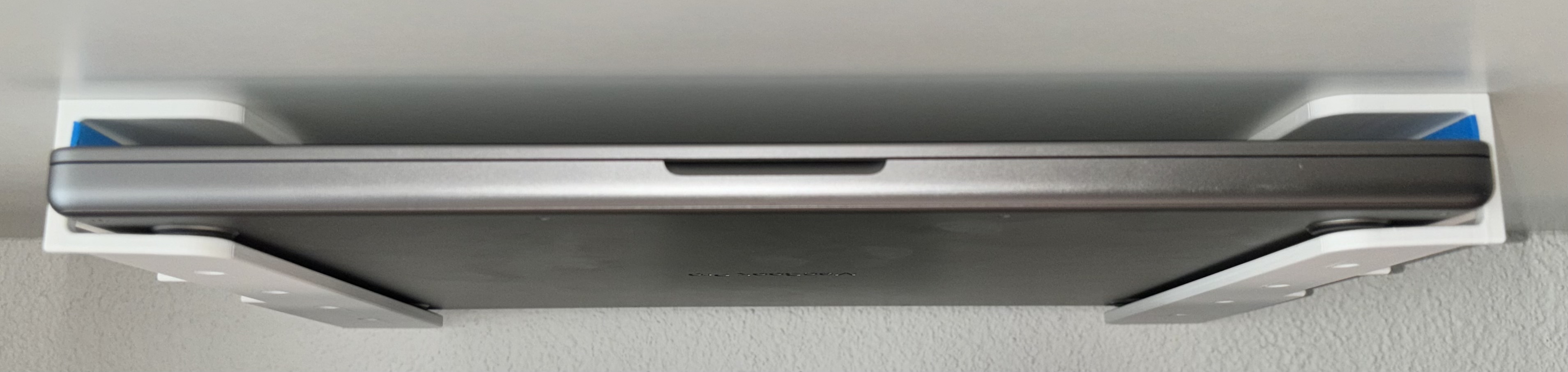 Cái đế đơn giản này để gắn MacBook 16" lên dưới gầm kệ. In bằng PLA, có chống đỡ và dán thêm mút chống trầy.