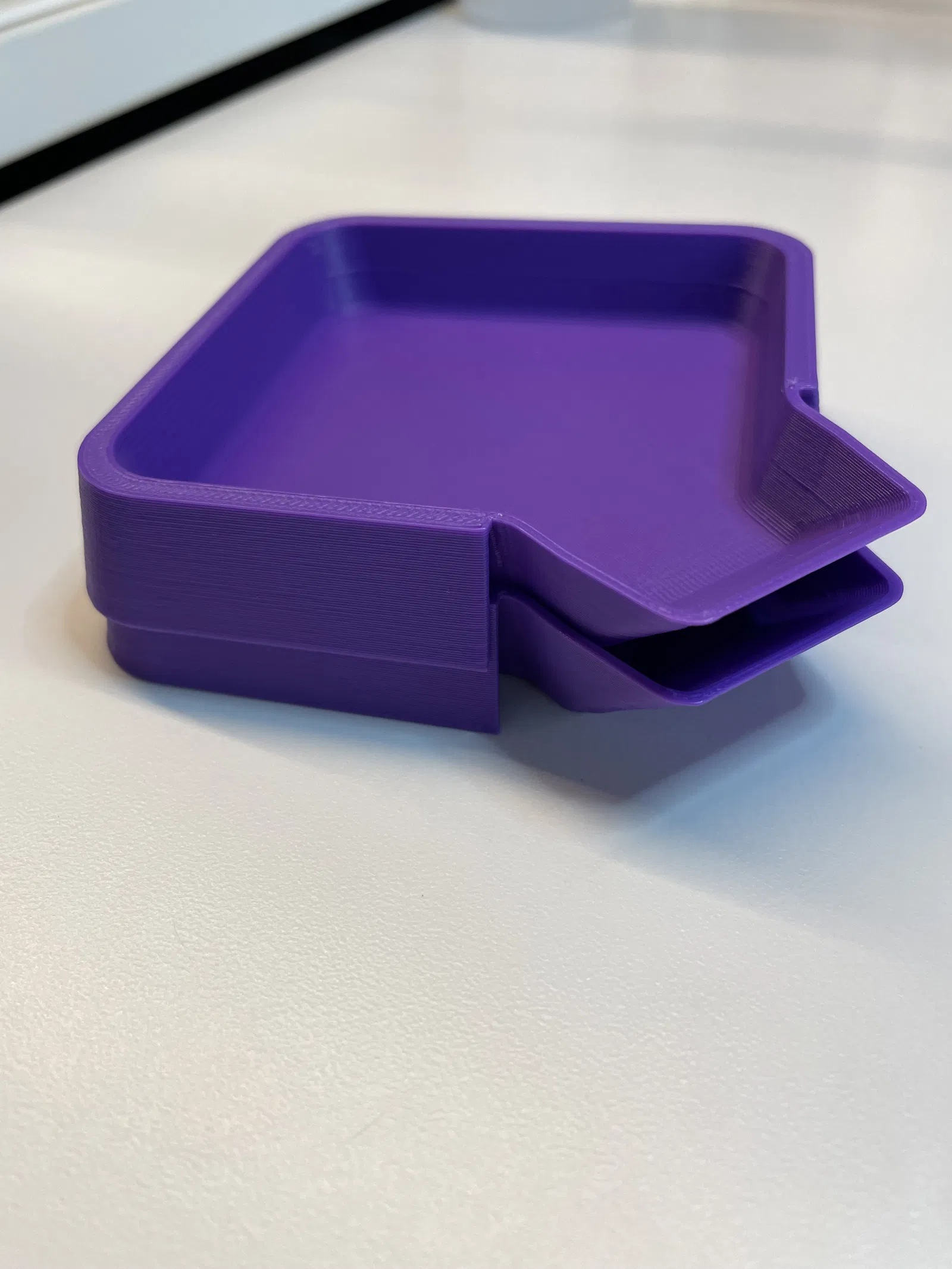 Khay đựng linh kiện nhỏ có thể xếp chồng, được remix từ bản gốc với vành rộng hơn để chống đổ. Hoàn hảo cho các dự án cần sắp xếp các món đồ lặt vặt.