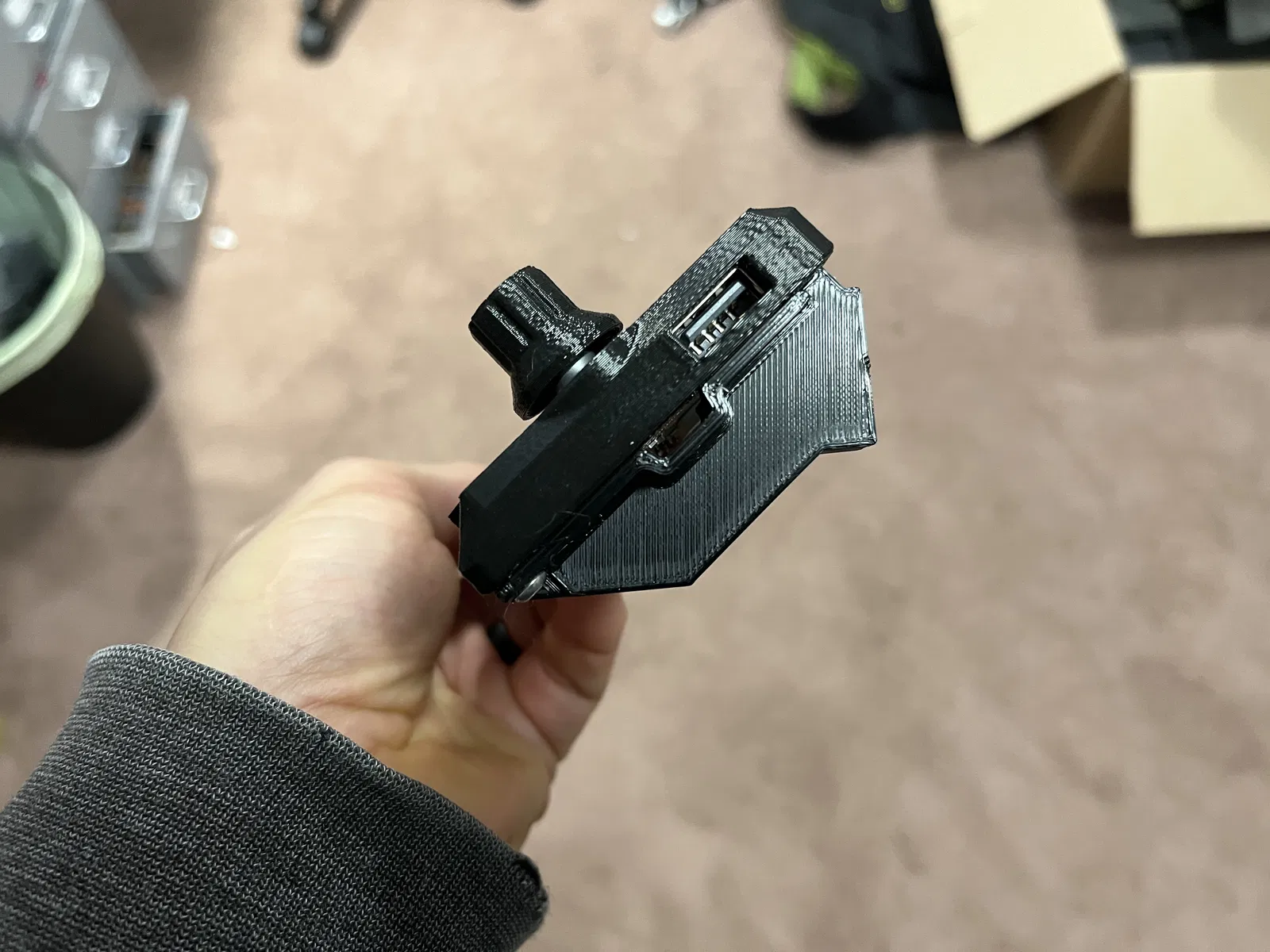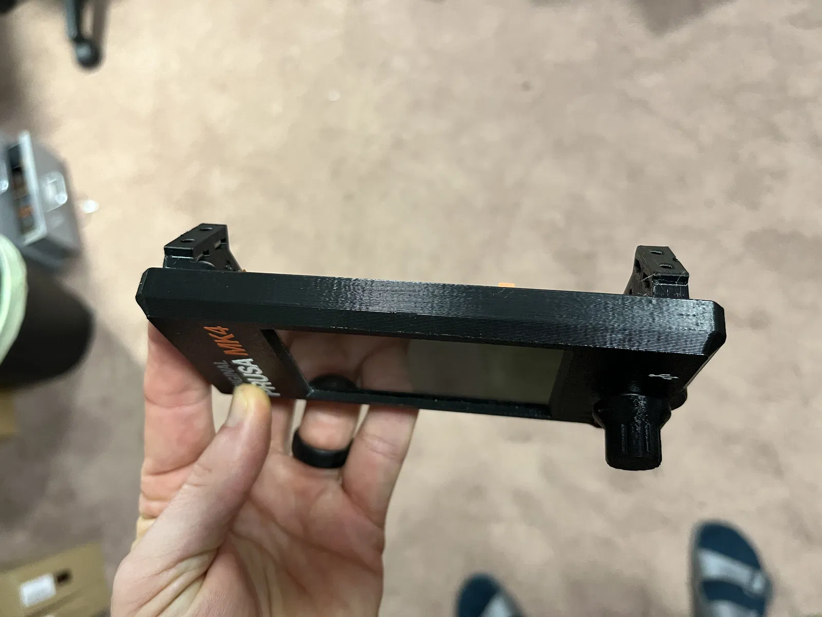 Cái đế màn hình mod này đưa màn hình LCD lại gần phía trước máy in 1cm, giúp giảm độ sâu của đế đi 1cm. Cái này rất hữu ích nếu bạn xài mấy cái thùng máy như DELACK enclosure nha. Không hiểu sao mấy cái trụ đỡ ban đầu lại dài thòng lọng vậy trời!