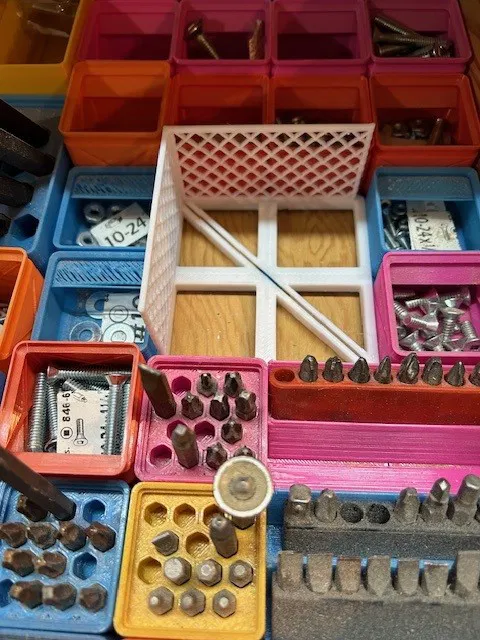 Cái dụng cụ tìm tâm nhanh chóng này in ra sẽ vừa khít trong một ô Gridfinity 2x2, thành một phần của bộ sưu tập Gridfinity của bạn.