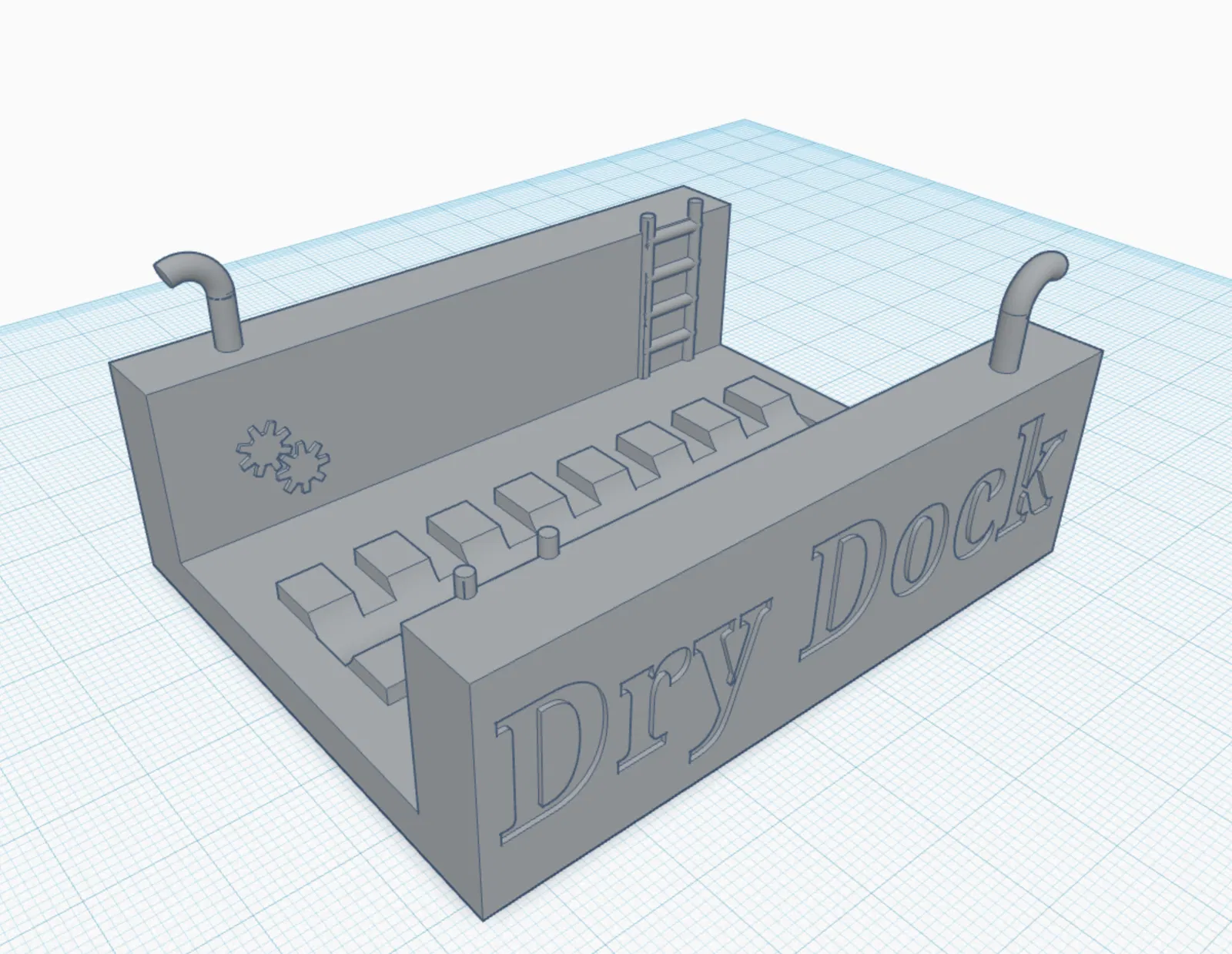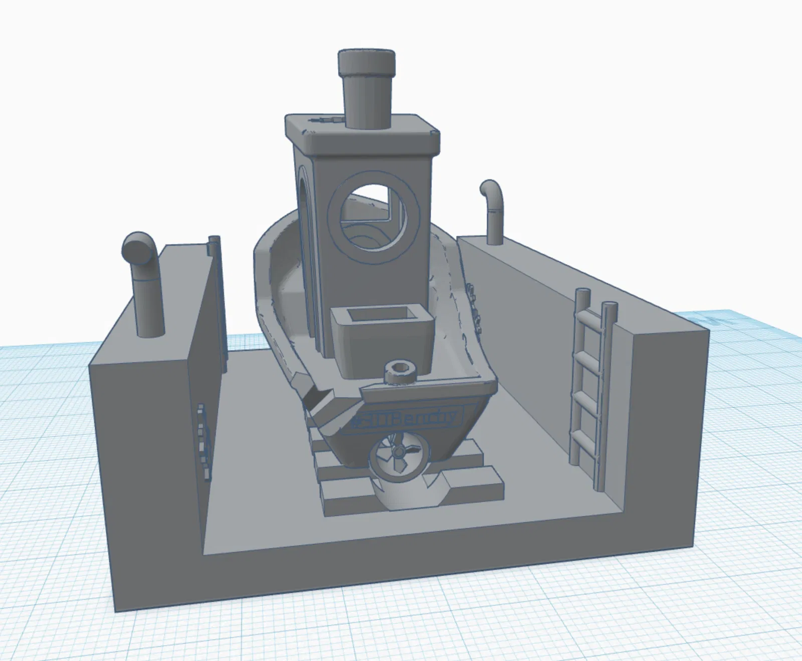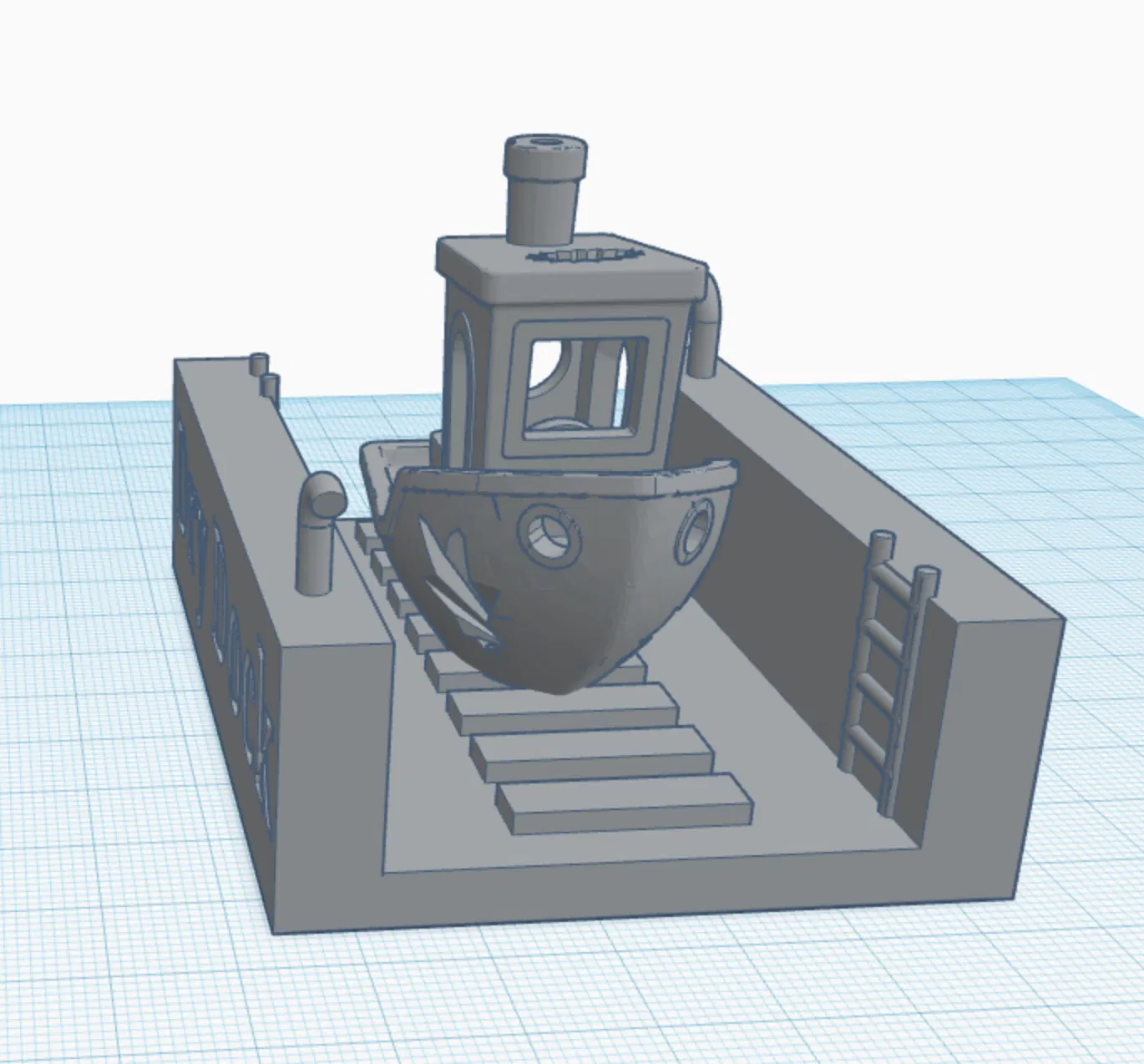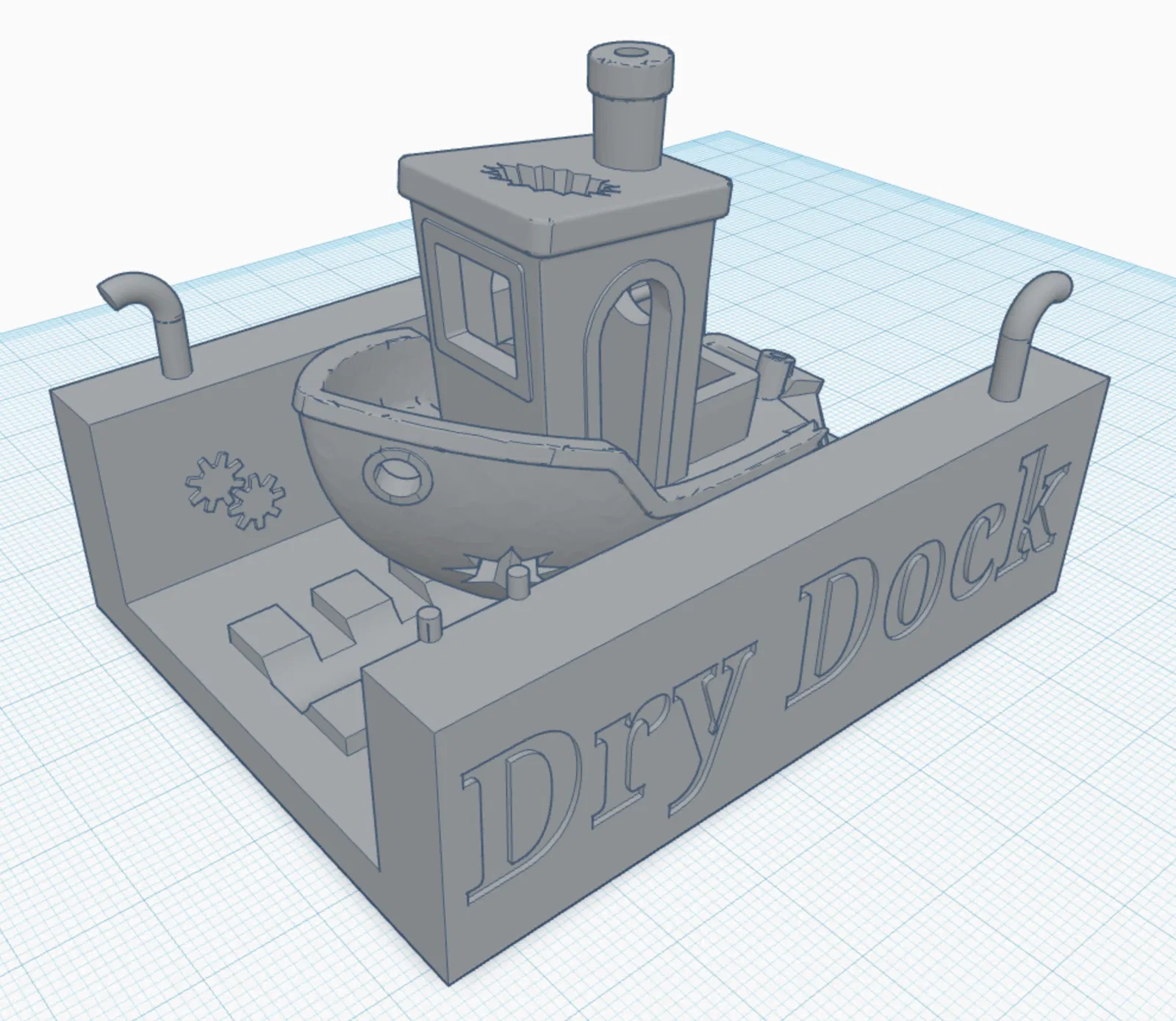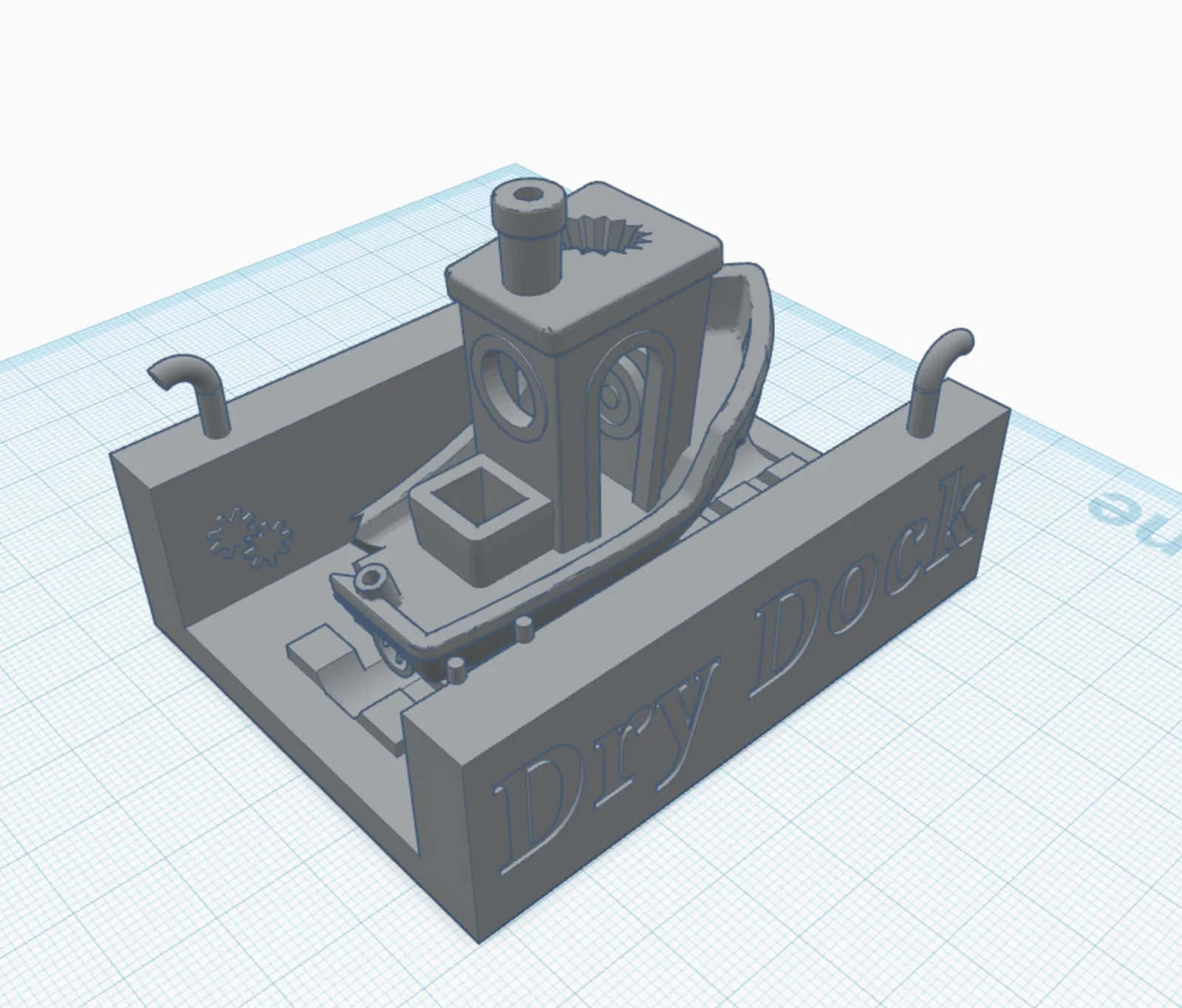 Một bến đỗ thực thụ cho Benchy! Khi Benchy của bạn cần sửa chữa sau những chuyến đi biển khắc nghiệt, hãy đưa nó vào bến đỗ riêng của bạn để bảo trì. Thiết kế trên Tinkercad, không cần lắp ráp.
